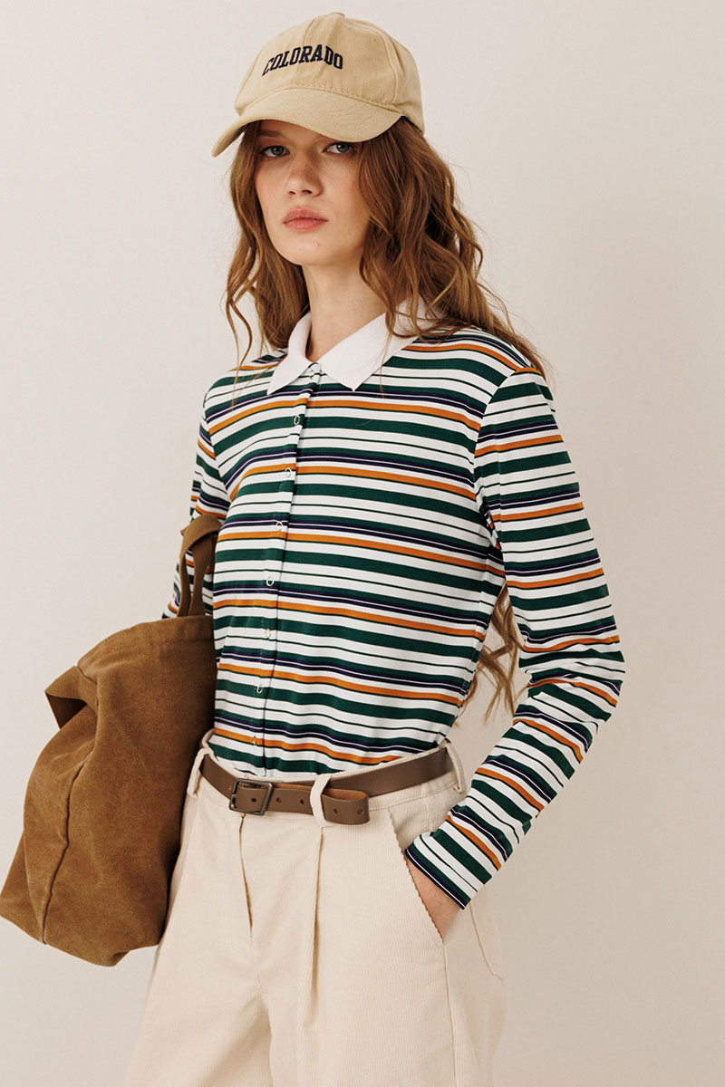 Трендовый в этом сезоне - джемпер с воротником - для тех, кто не хочет оставаться незамеченным! Лонгслив: комфортная хлопковая ткань, застежка на кнопки, вязаный воротник.