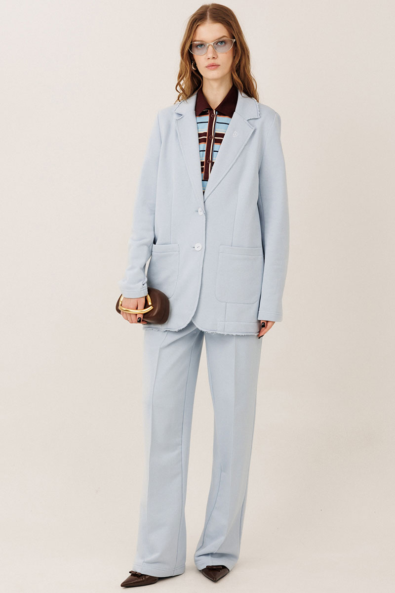 Костюм Gowear из футера в стиле smart casual поможет создать в меру строгий и одновременно расслабленный образ. Костюм состоит из жакета и прямых брюк.