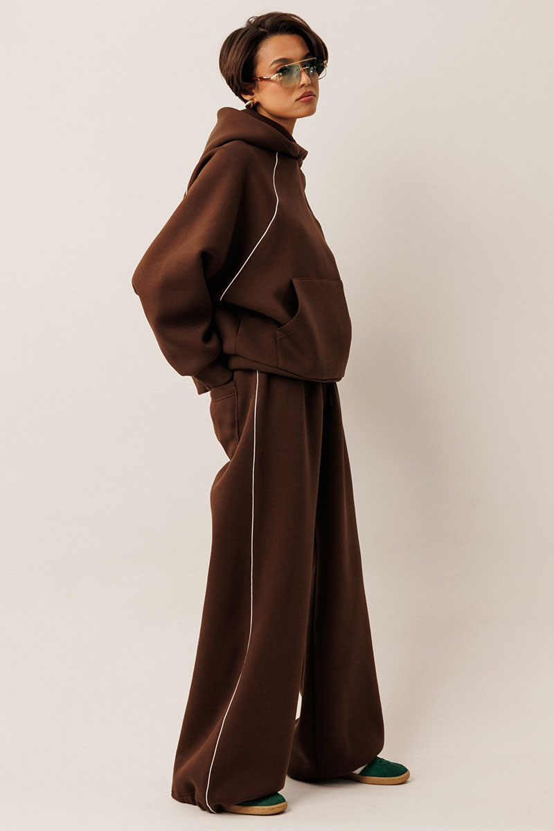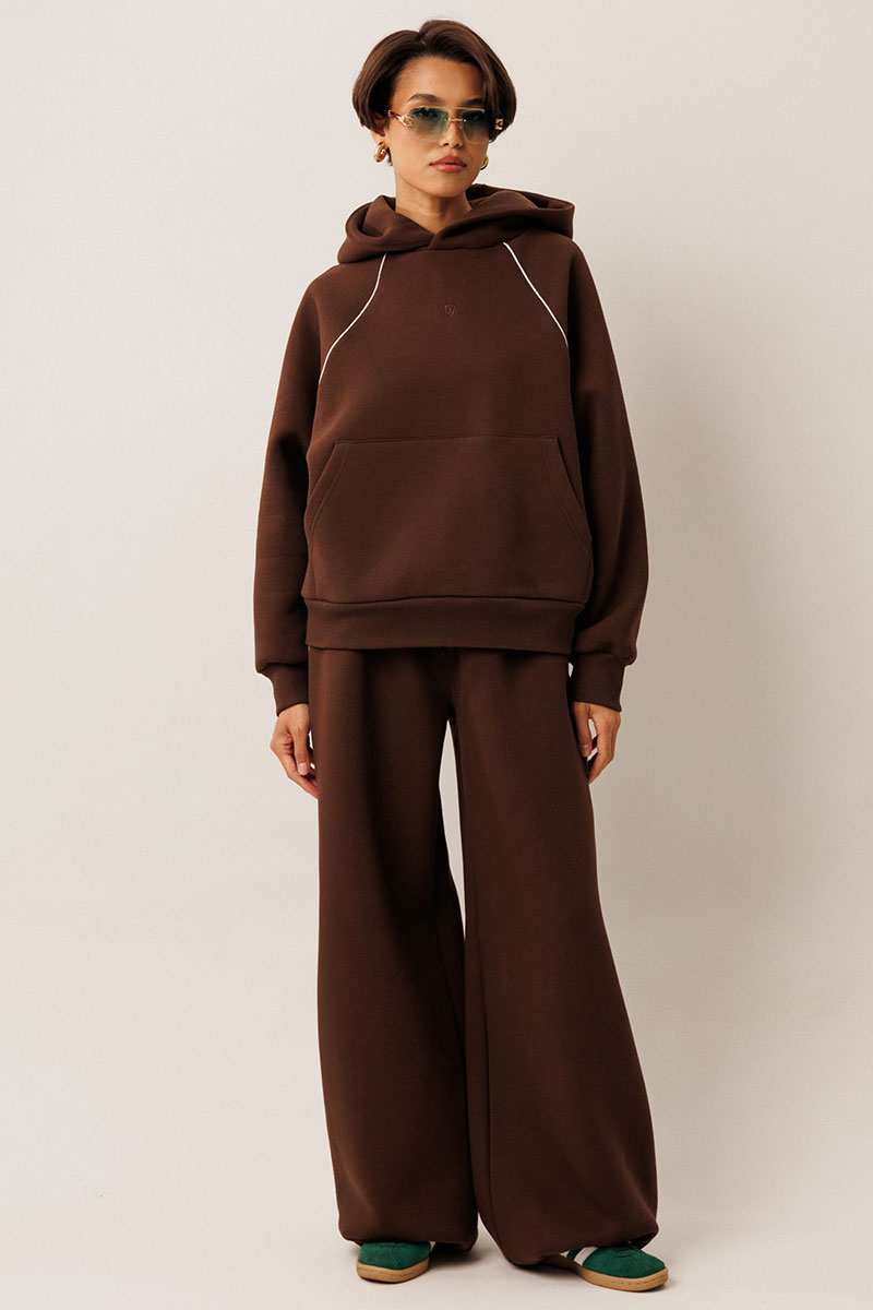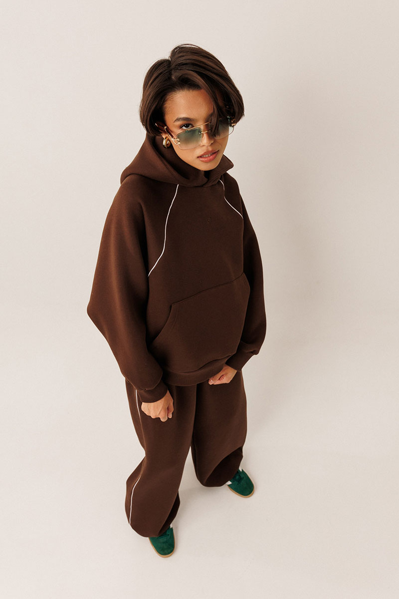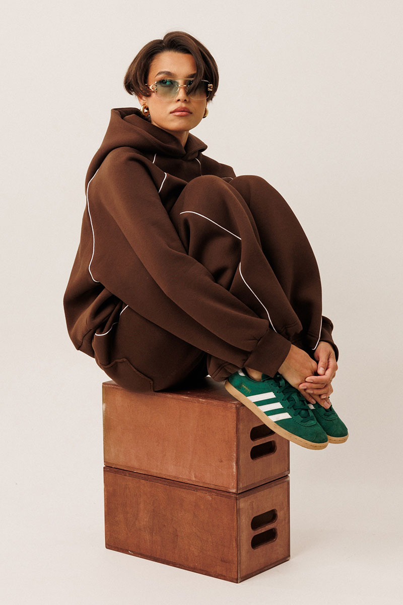 Спортивный теплый костюм от GOwear для твоей комфортной жизни. Изготовлен из футера с начесом, состоит из оверсайз худи и брюк.