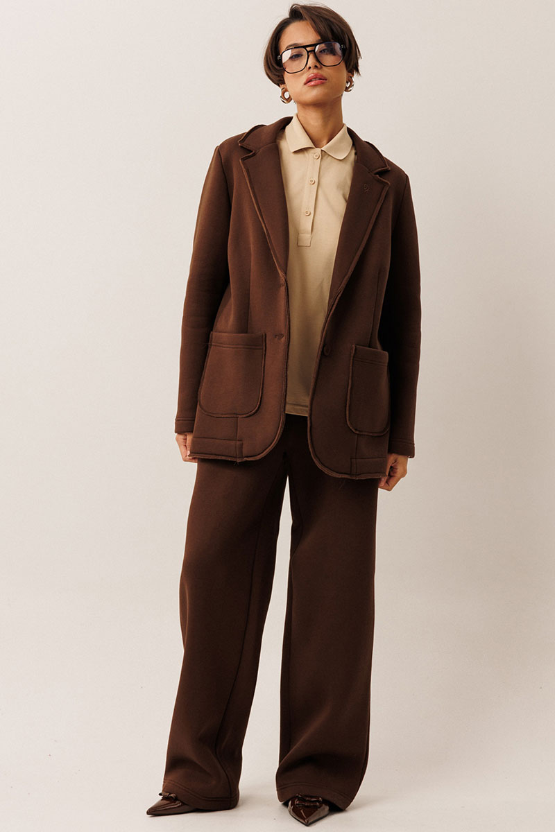 Костюм в стиле smart casual создаст в меру строгий и одновременно расслабленный образ как для работы, так и торжественного мероприятия. И жакет, и брюки идеально впишуться в Ваш гардероб как вместе так и порознь.