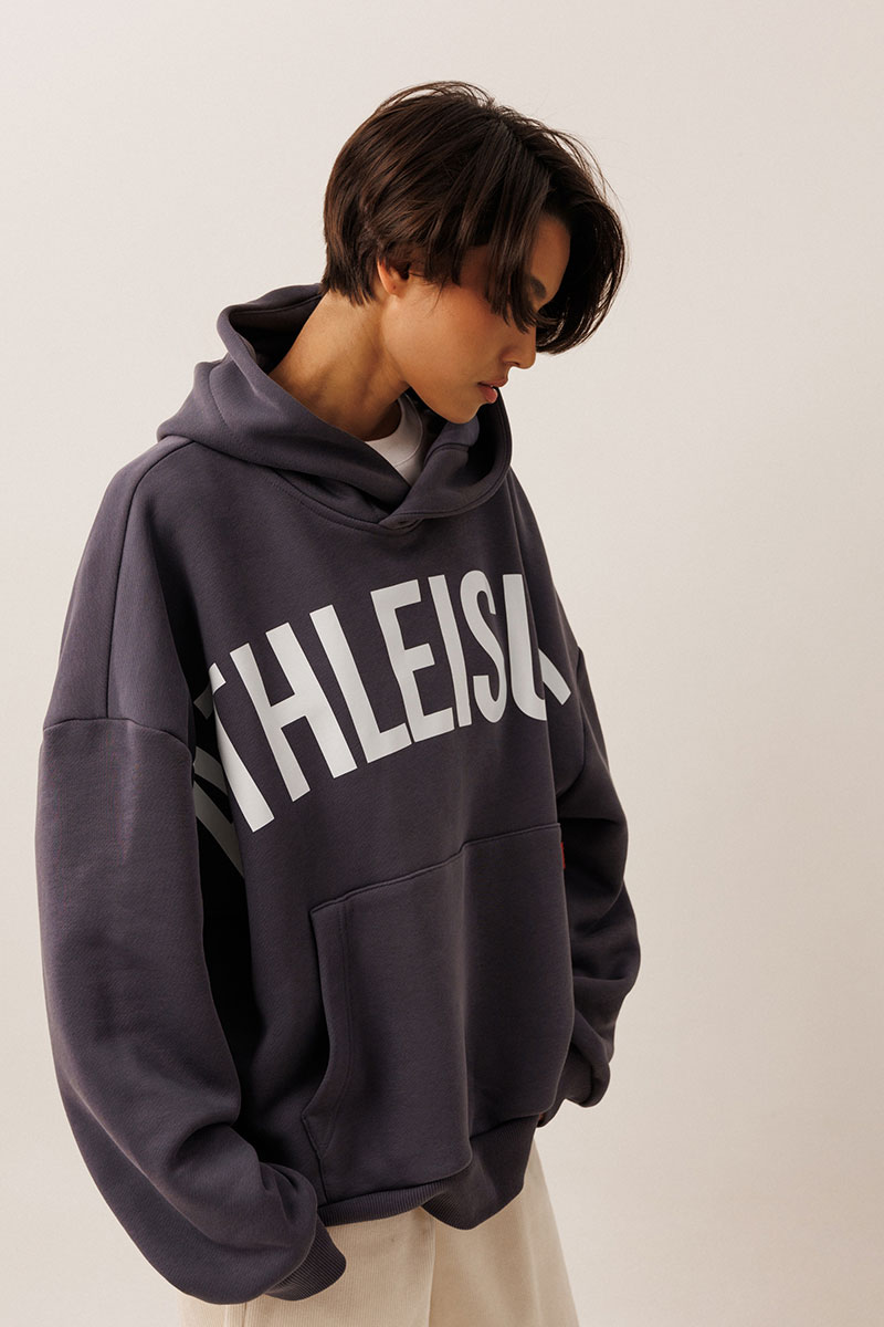 Ультрамодная унисекс-худи с большим принтом на груди и контрастной нашивкой логотипом - станет любимым элементом гардероба для вас и вашей половинки!