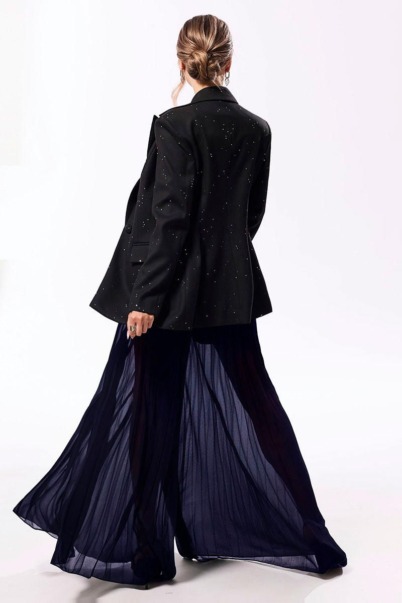 Брюки расширенного силуэта, с отрезным поясом, без застежки, верх брюк присборен на резинку. Брюки без боковых швов.
