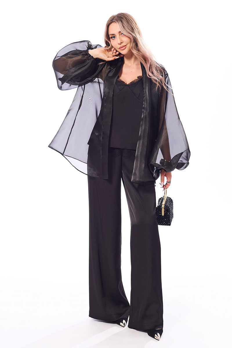 Цветовая гамма для верха, подкладки, фурнитуры, отделки: блузка из ткани в одной цветовой гамме. Отделочные строчки в тон ткани