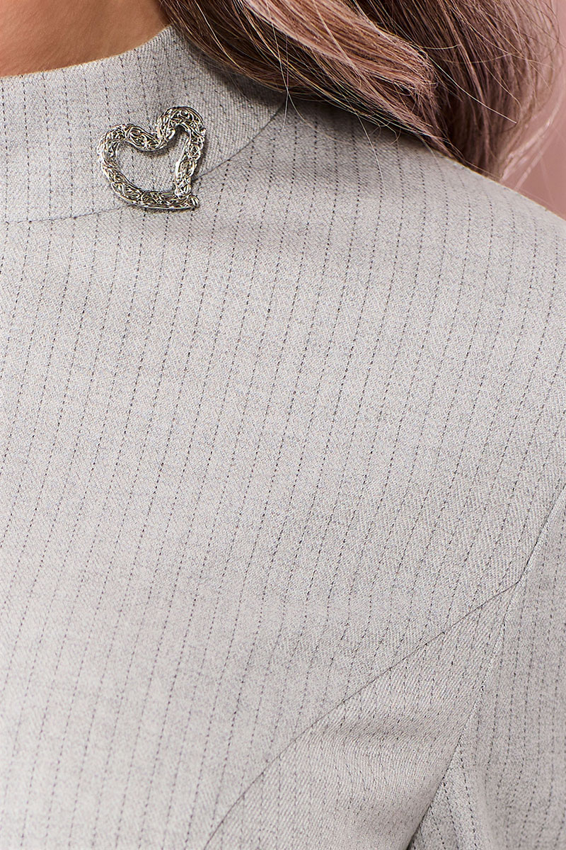 Цветовая гамма для верха, подкладки, фурнитуры, отделки: платье из ткани с геометрическим рисунком. По верхней части переда платье декорировано брошью.