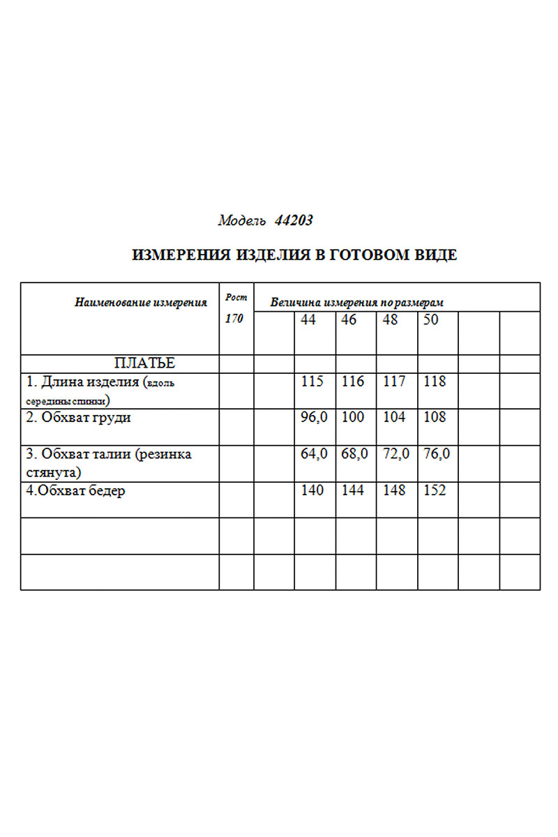 Платье с центральной застежкой на петли и пуговицы, с отрезным воротником- стойкой, рукав- крылышко. Платье отрезное по линии талии. Шов по талии присборен на резинку. По горловине переда- шнур- завязка. В боковых швах расположены карманы. Платье со съемным поясом.
