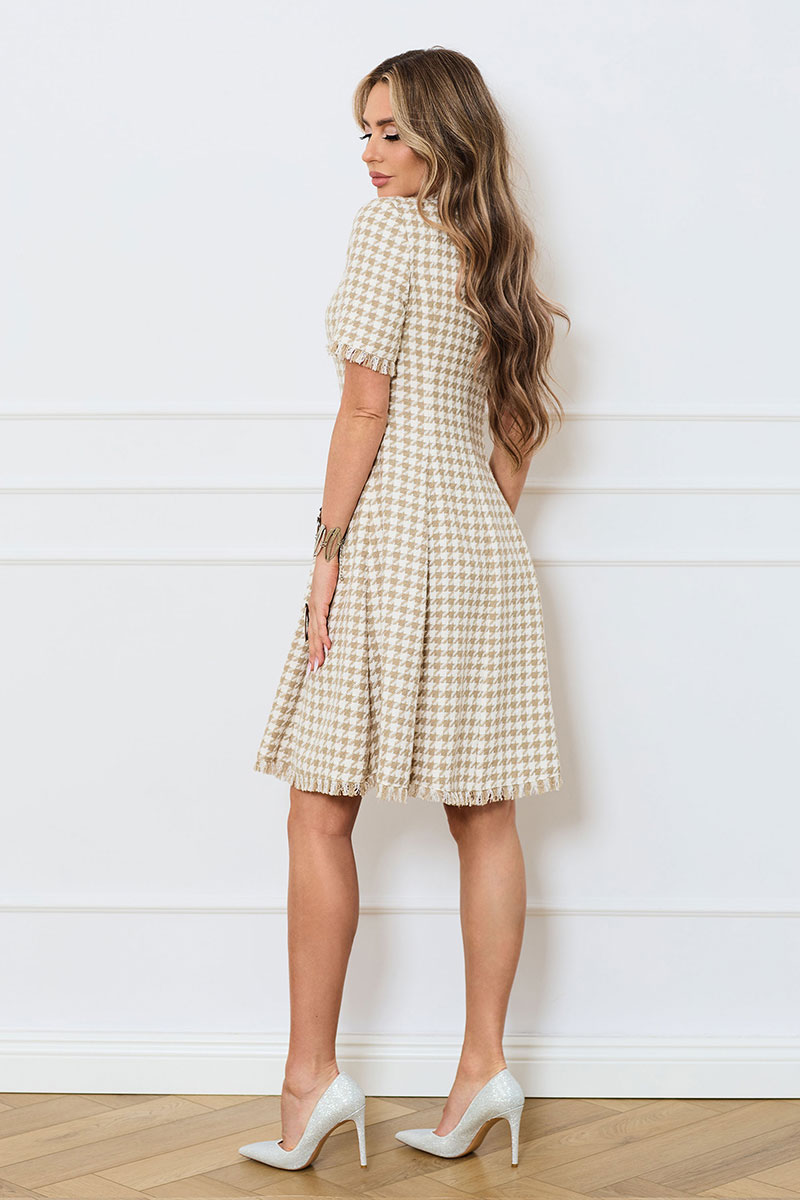 Цветовая гамма для верха, подкладки, фурнитуры, отделки: платье из ткани с геометрическим рисунком
