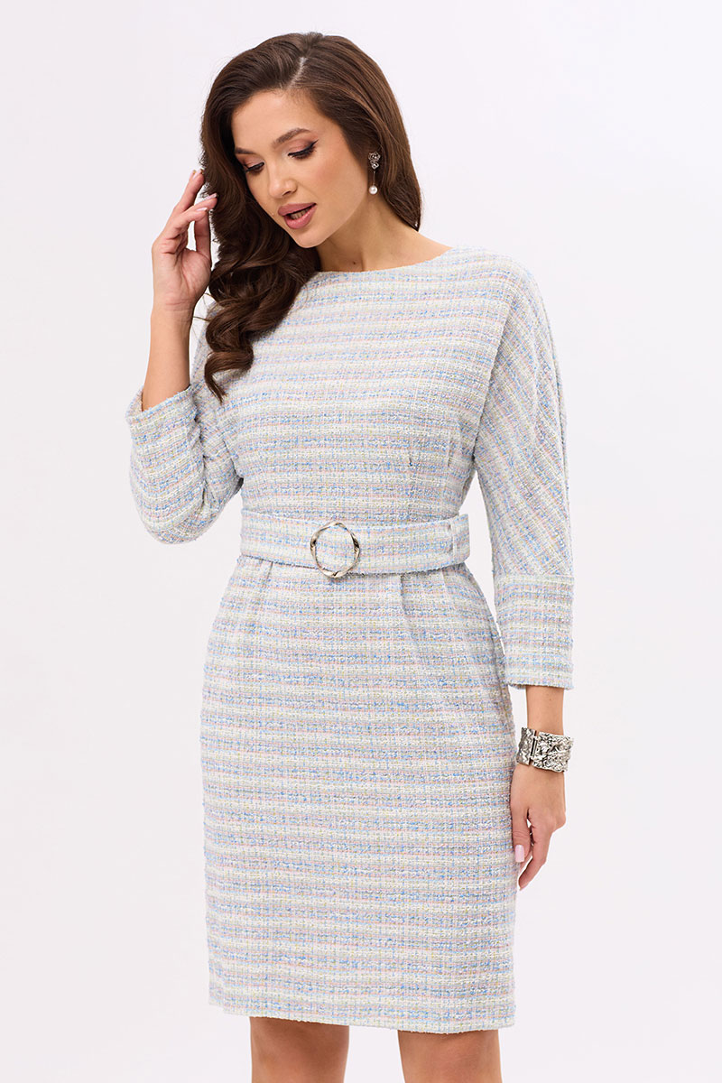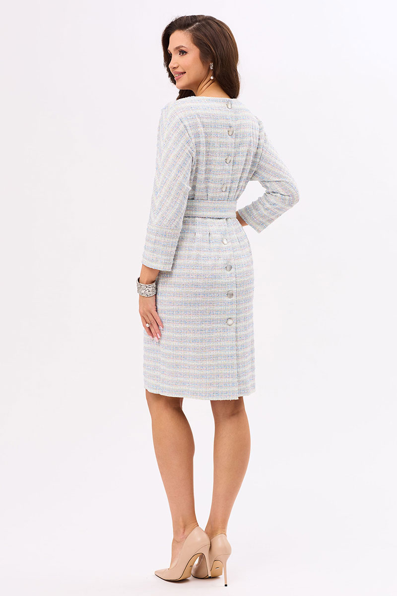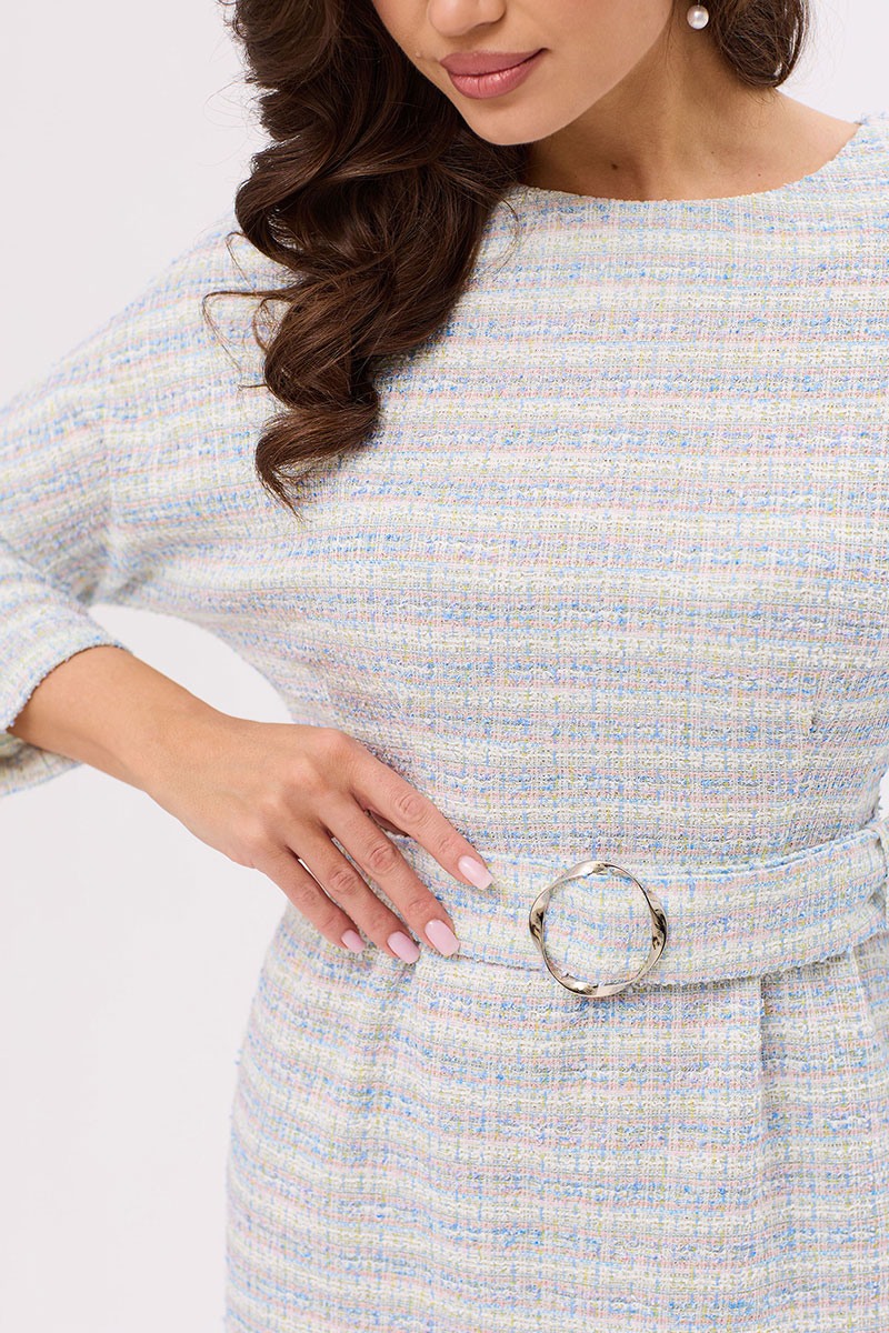 Цветовая гамма для верха, подкладки, фурнитуры, отделки: платье из ткани с геометрическим рисунком.
