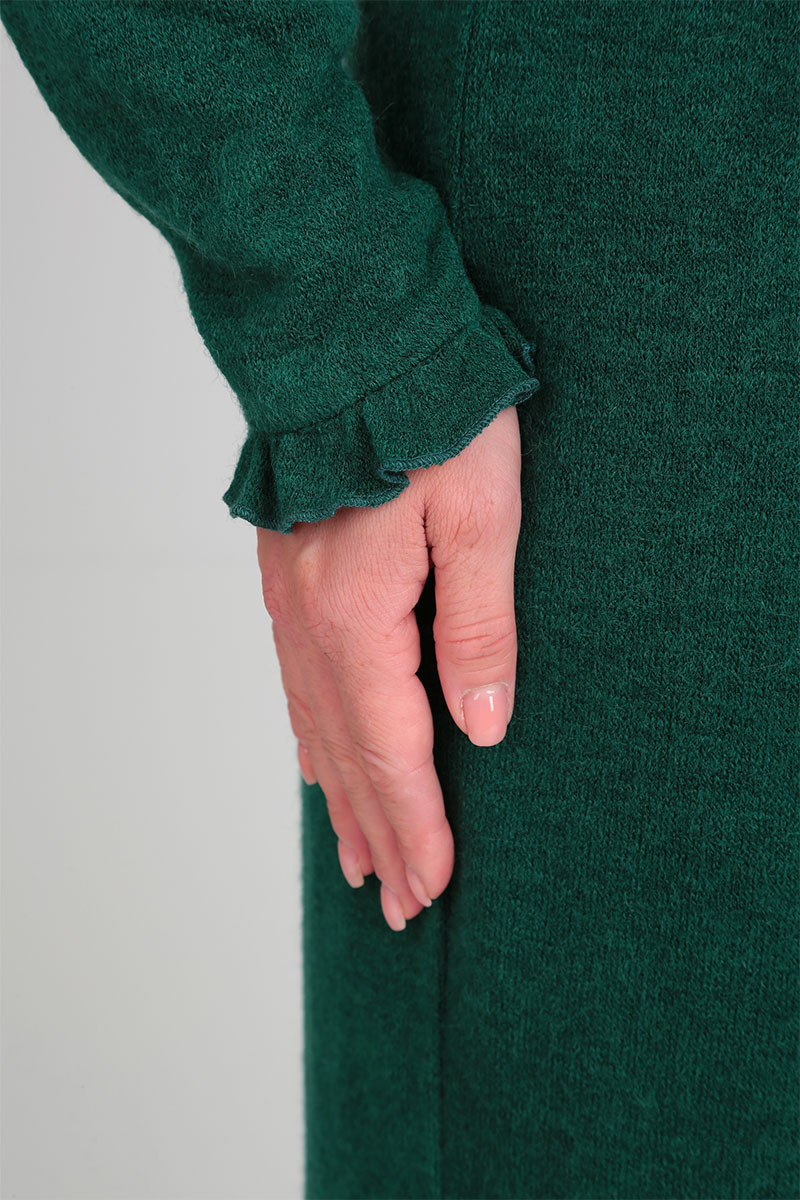 Вид покроя рукава: реглан, длинный, с рюшей по низу рукава.