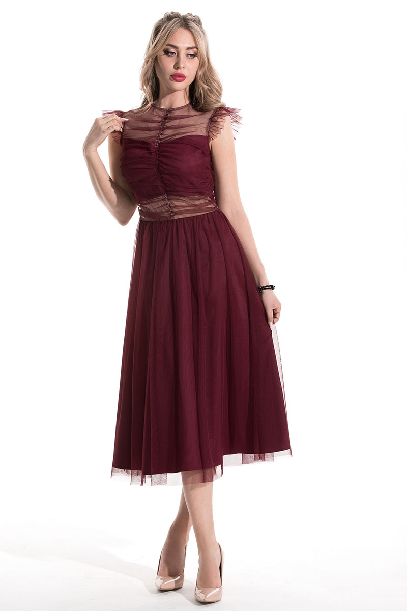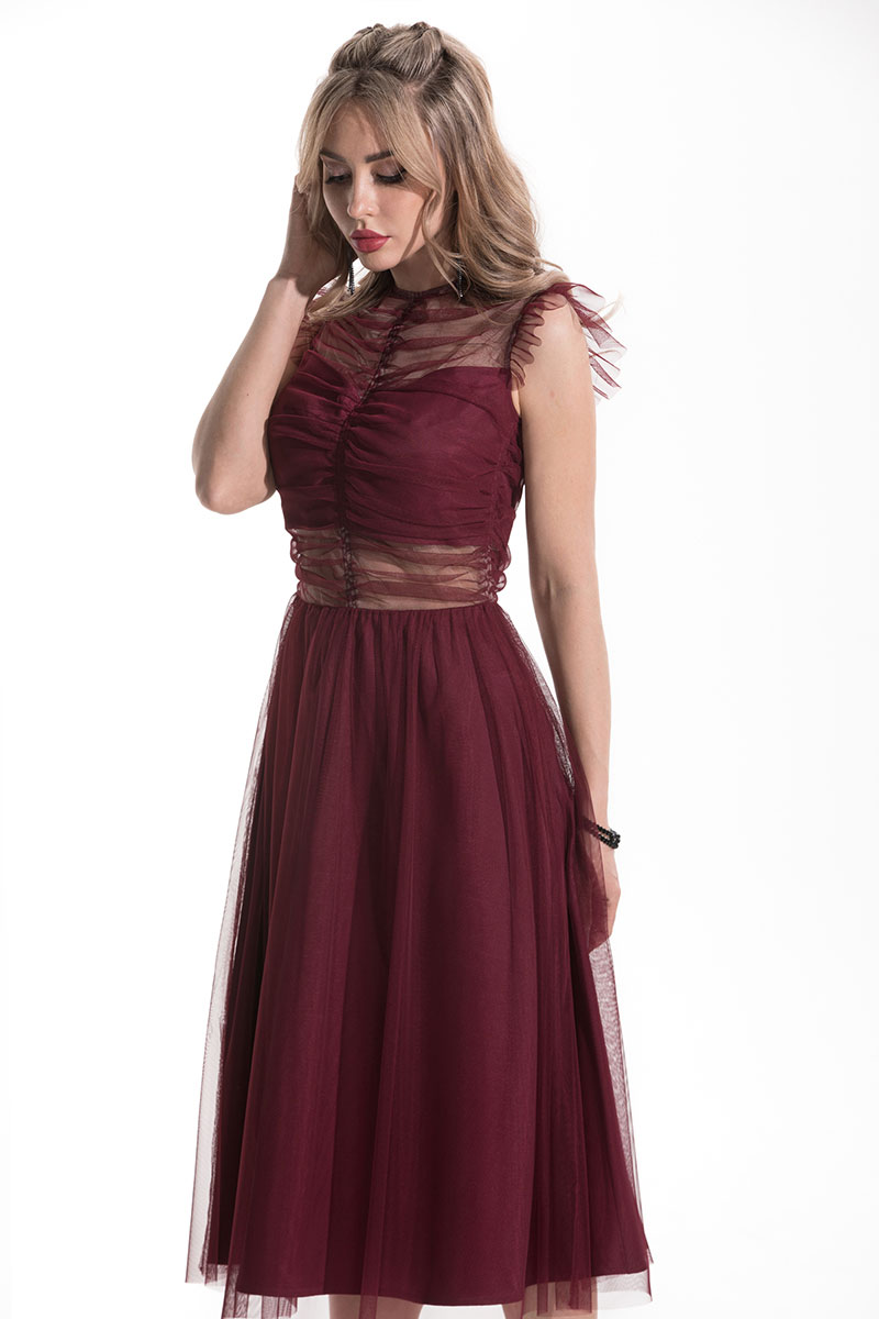 Цветовая гамма для верха, подкладки, фурнитуры, отделки: платье двуслойное, из ткани в одной цветовой гамме. Сетка и подкладка в тон.