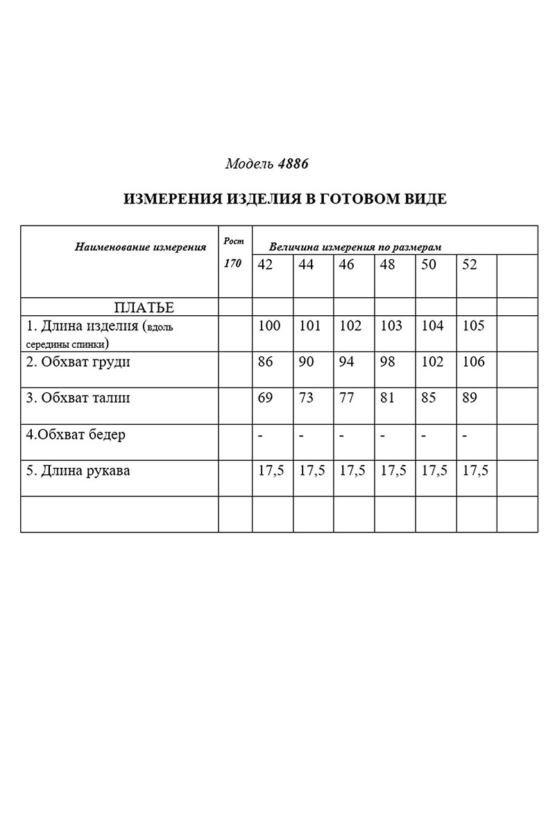 Платье без воротника, с V-образным вырезом горловины по переду и спинке, с застежкой на потайную молнию в среднем шве спинки. Платье отрезное по линии талии. Лиф переда с асимметричным средним швом, наклонными талиевыми вытачками, заканчивающимися небольшими складками. Верхняя часть спинки со средним швом, талиевыми вытачками. Нижняя часть платья двуслойная, присборенная по талиевому шву. По переду, на талиевом шве закреплен декоративный бант. Рукав втачной, короткий.