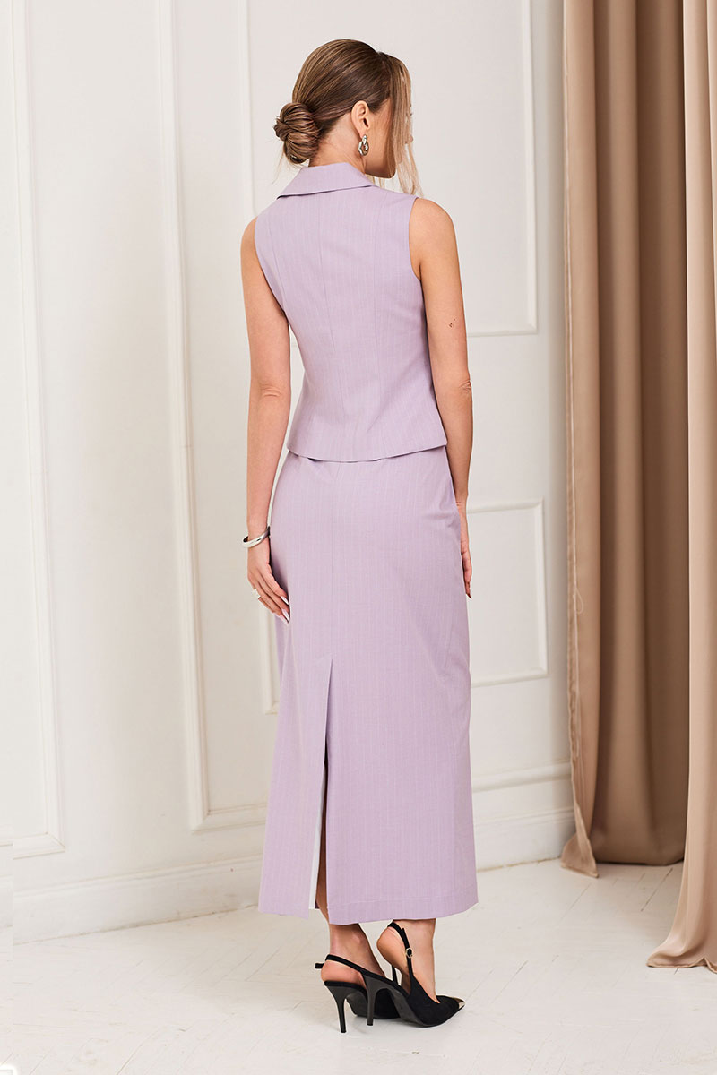 Юбка без пояса, застежкой на потайную молнию в среднем шве спинки. Переднее полотнище цельное. Заднее полотнище со средним швом,заканчивающимся шлицей, талиевыми вытачками.