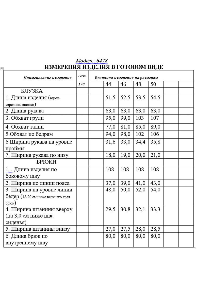 - Состав: Текстильная; костюмно-плательная ткань: блузка (полиэстер 100%); брюки (полиэстер 100%)