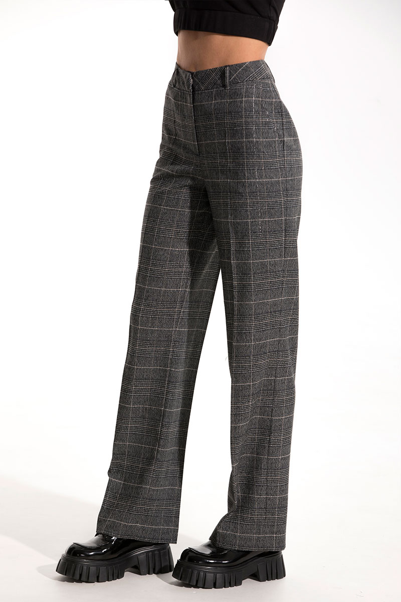 Брюки с отрезным поясом, на поясе расположены шлевки. Передние половинки с карманами, вход в карман наклонный к боковому шву. Застежка гульфик.