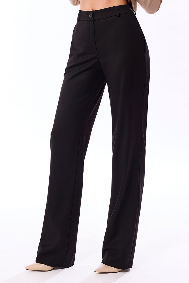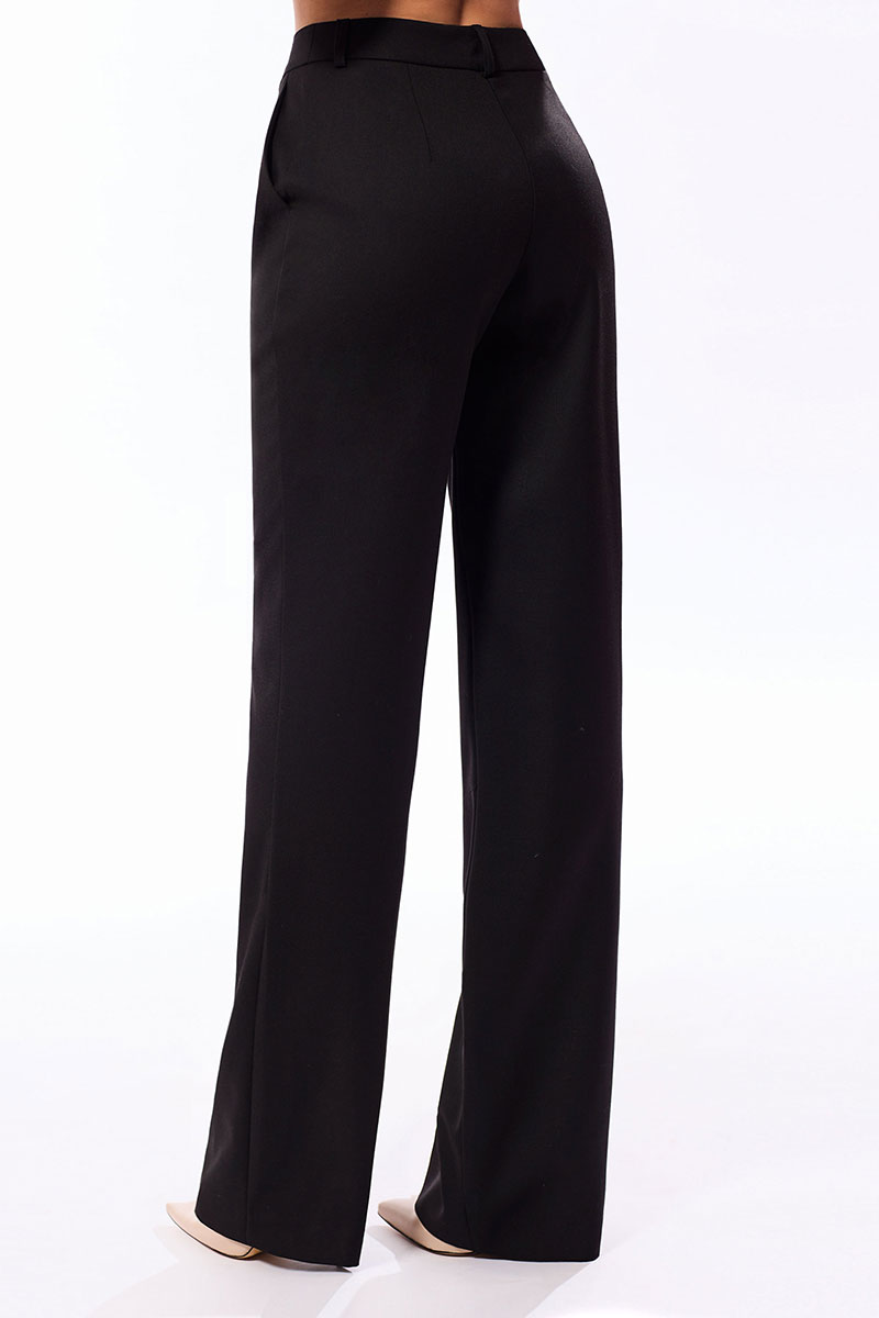 Брюки прямые, с отрезным поясом. На поясе расположены шлевки. Застежка гульфик. На передних половинках расположены карманы. Вход в карман наклонный к боковому шву.