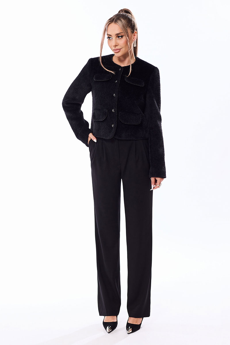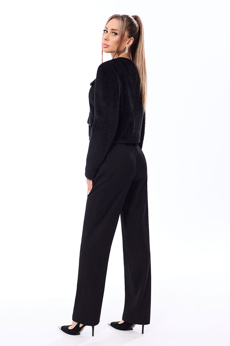 Цветовая гамма для верха, подкладки, фурнитуры, отделки: комплект выполнен из ткани в одной цветовой гамме. Жакет выполнен из трикотажного ворсованного полотна