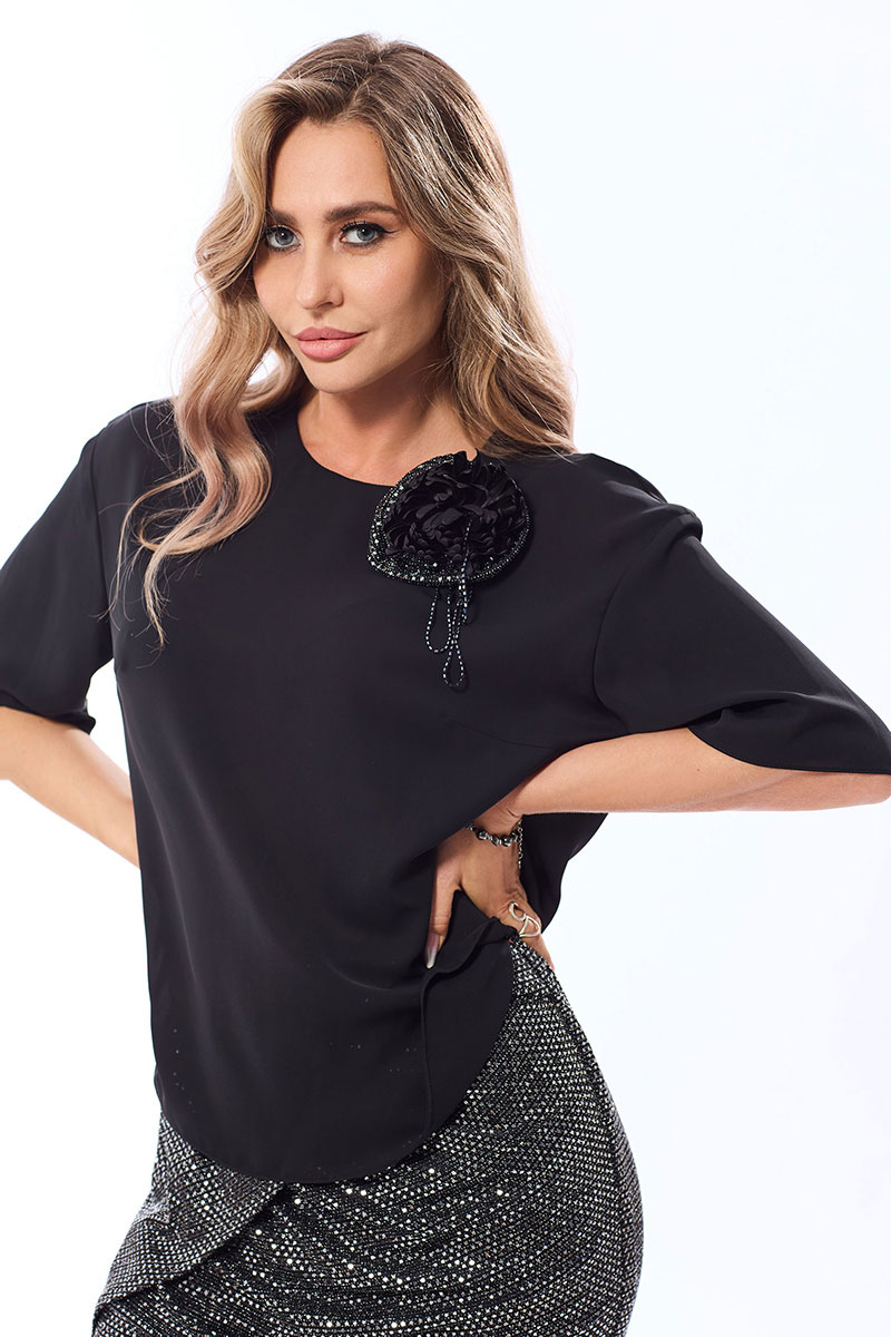 - Состав: блуза: ПЭ 65%; вискоза 32%; спандекс 3%; юбка: ПЭ 76%; 24% мет. нить