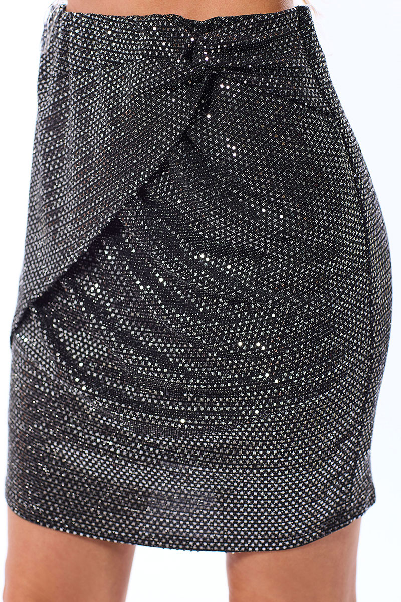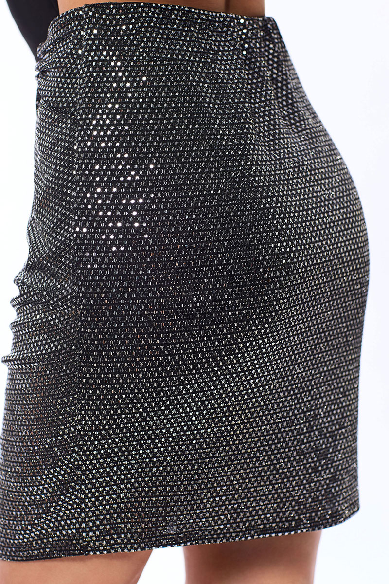 Цветовая гамма для верха, подкладки, фурнитуры, отделки: блузка выполнена из ткани в одной цветовой гамме. Юбка выполнена из ткани с люрексом