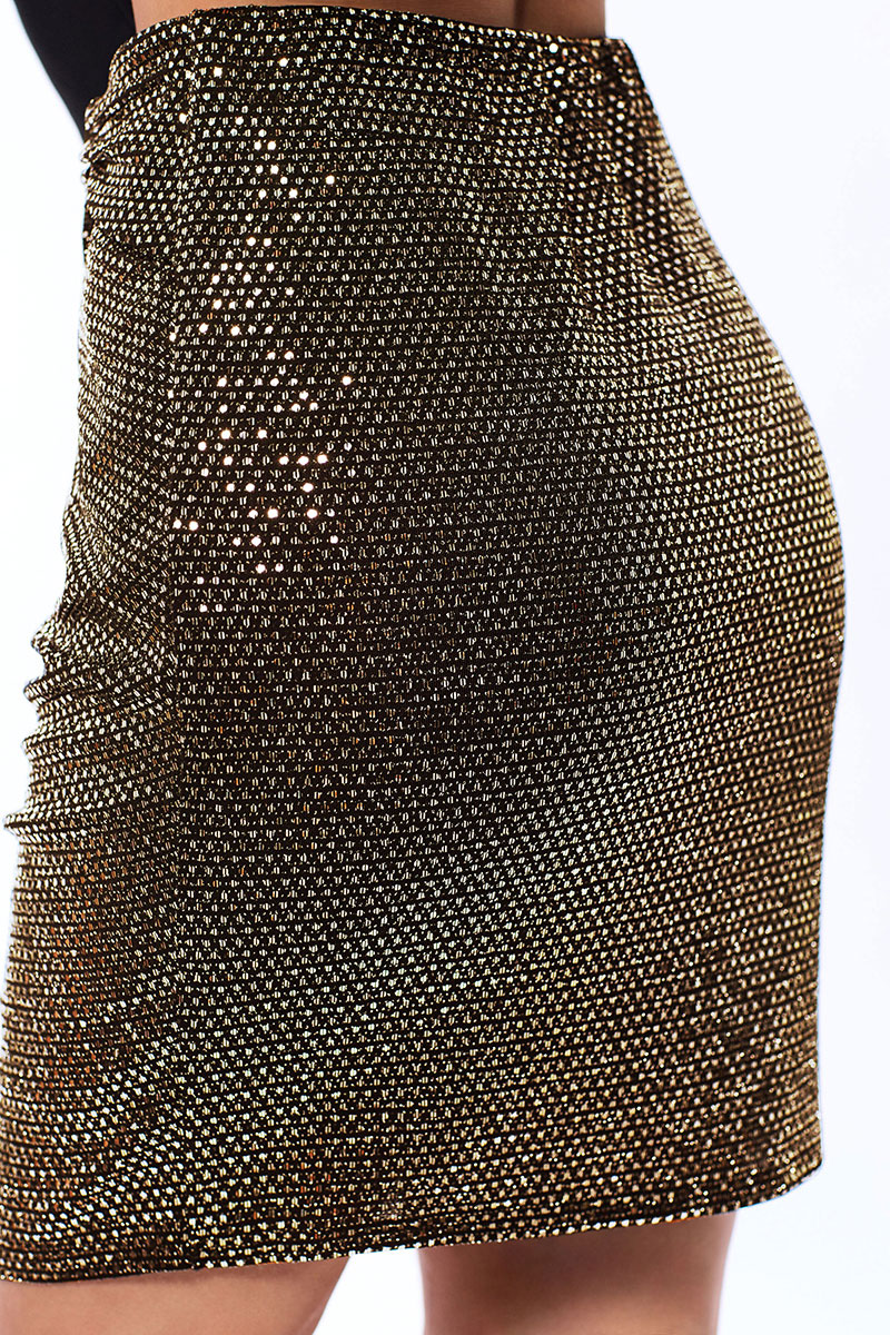 Цветовая гамма для верха, подкладки, фурнитуры, отделки: блузка выполнена из ткани в одной цветовой гамме. Юбка выполнена из ткани с люрексом