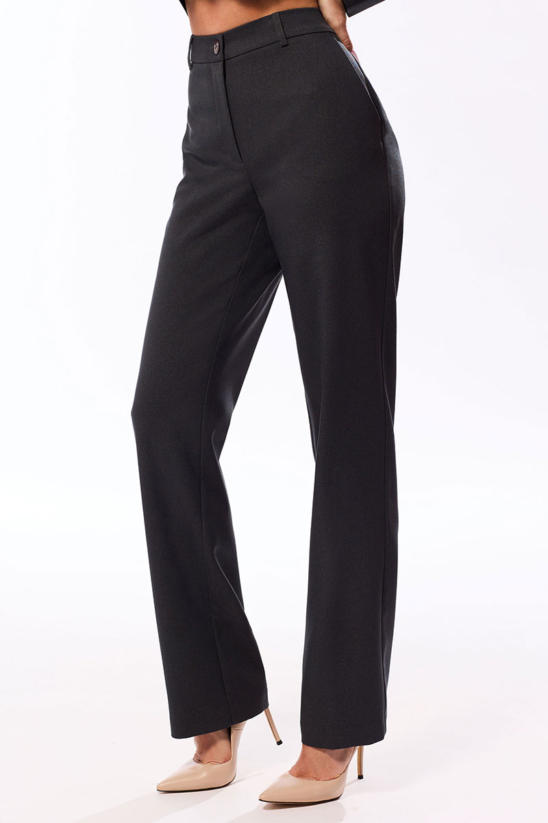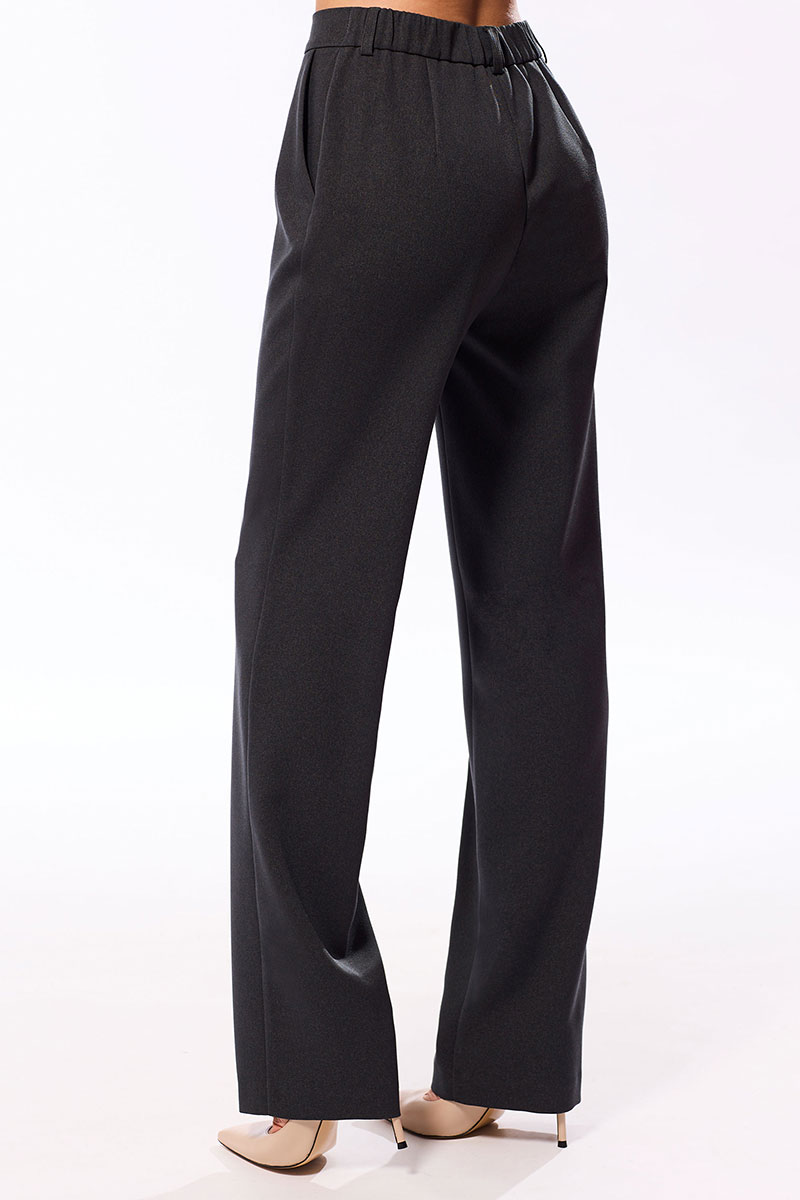 Брюки с отрезным поясом. В области спинки пояс присборен на резинку. Передние половинки с карманами, вход в карман наклонный к боковому шву. Застежка гульфик.