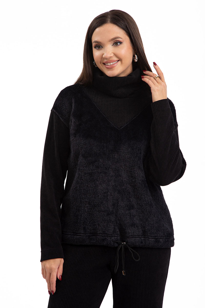 Блузон с высоким отрезным воротником- хомут. По переду с отрезной V- образной кокеткой. Спинка цельная. По низу блузона- кулиса со шнуром. Рукав втачной, длинный. Плечо- спущенное.
