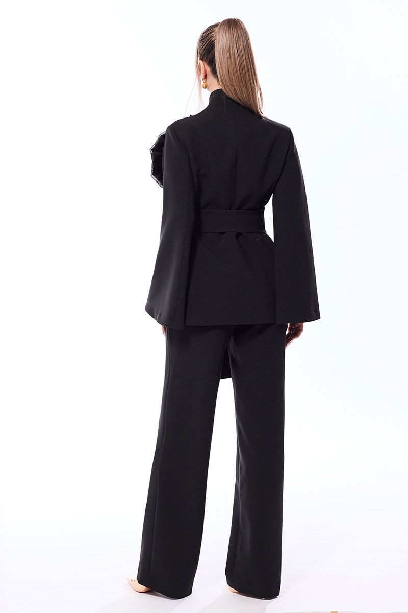 Комплектация: жакет на подкладке, брюки, съемное украшение