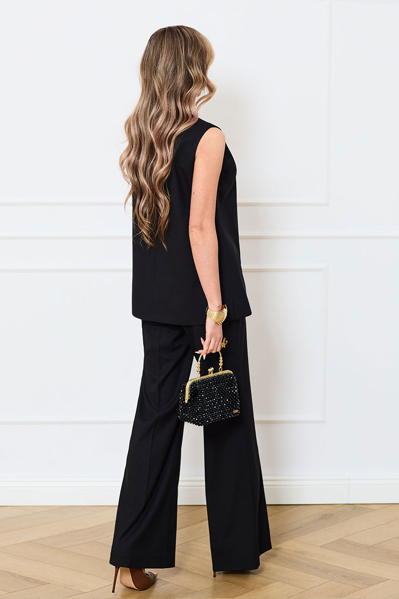 Жилет с асимметричной застежкой на петли и пуговицы, по горловине переда. По переду полочки с запахом. Спинка со средним швом.