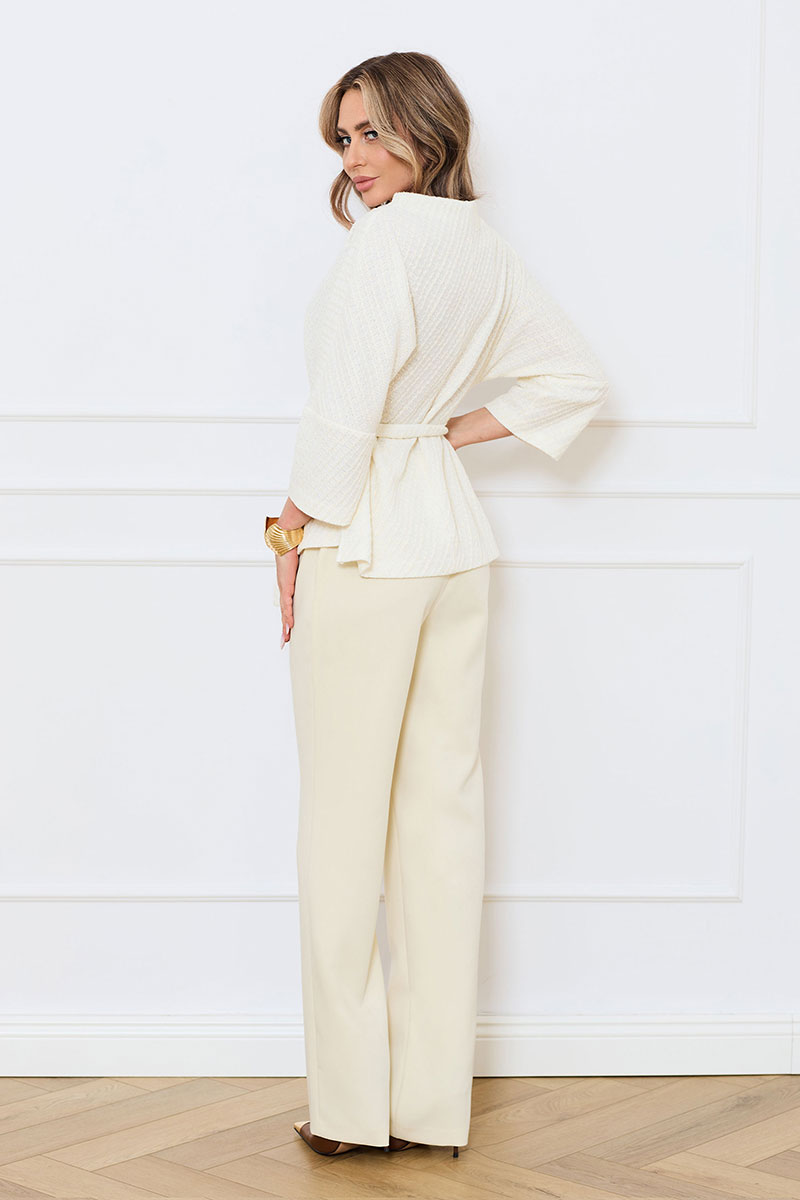 Цветовая гамма для верха, подкладки, фурнитуры, отделки: комплект выполнен из разных видов тканей- блузон из прикотажного полотна, брюки из поливискозы