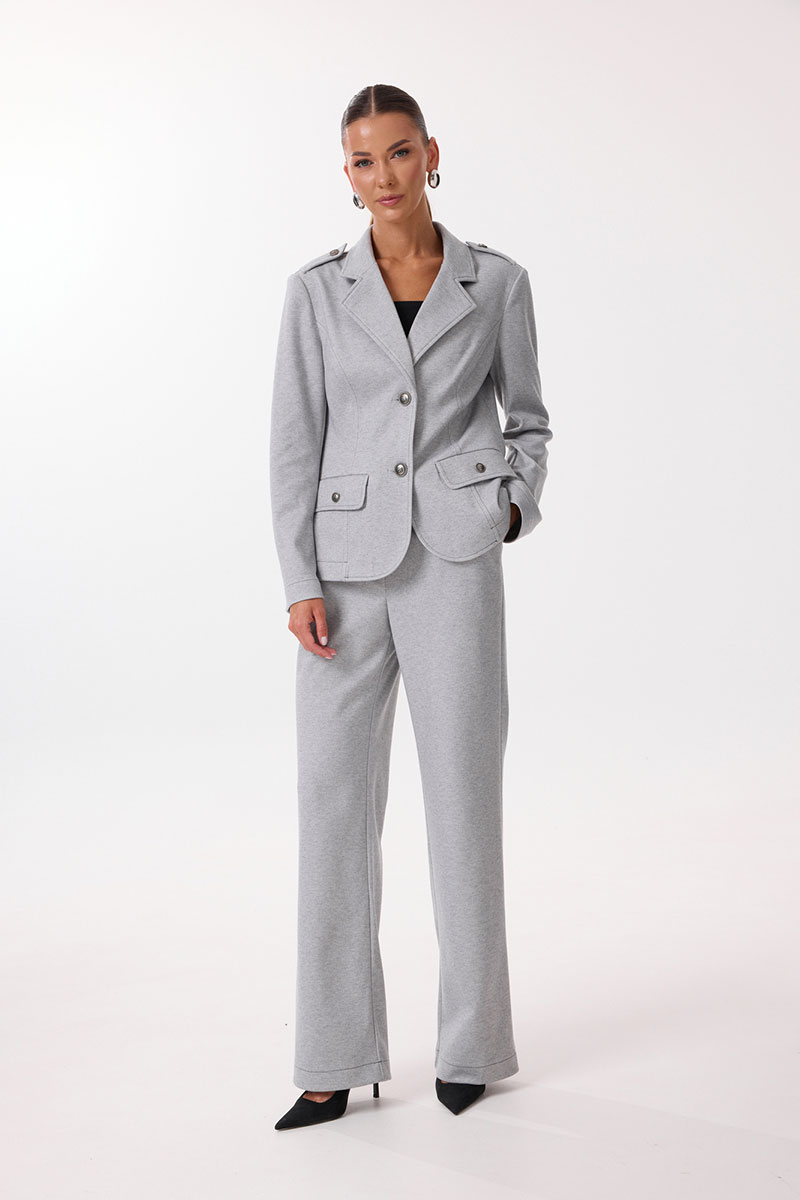 Костюм женский, состоящий из жакета без подкладки и брюк.