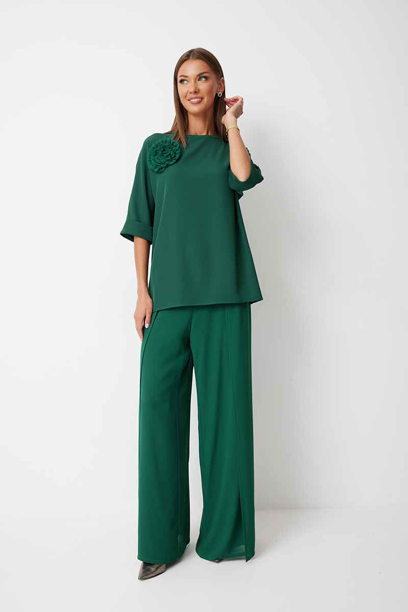 Костюм состоит из блузы и брюк.