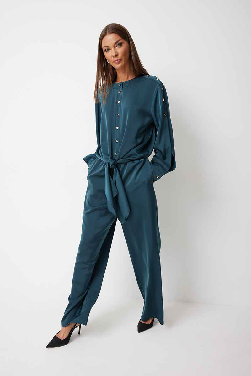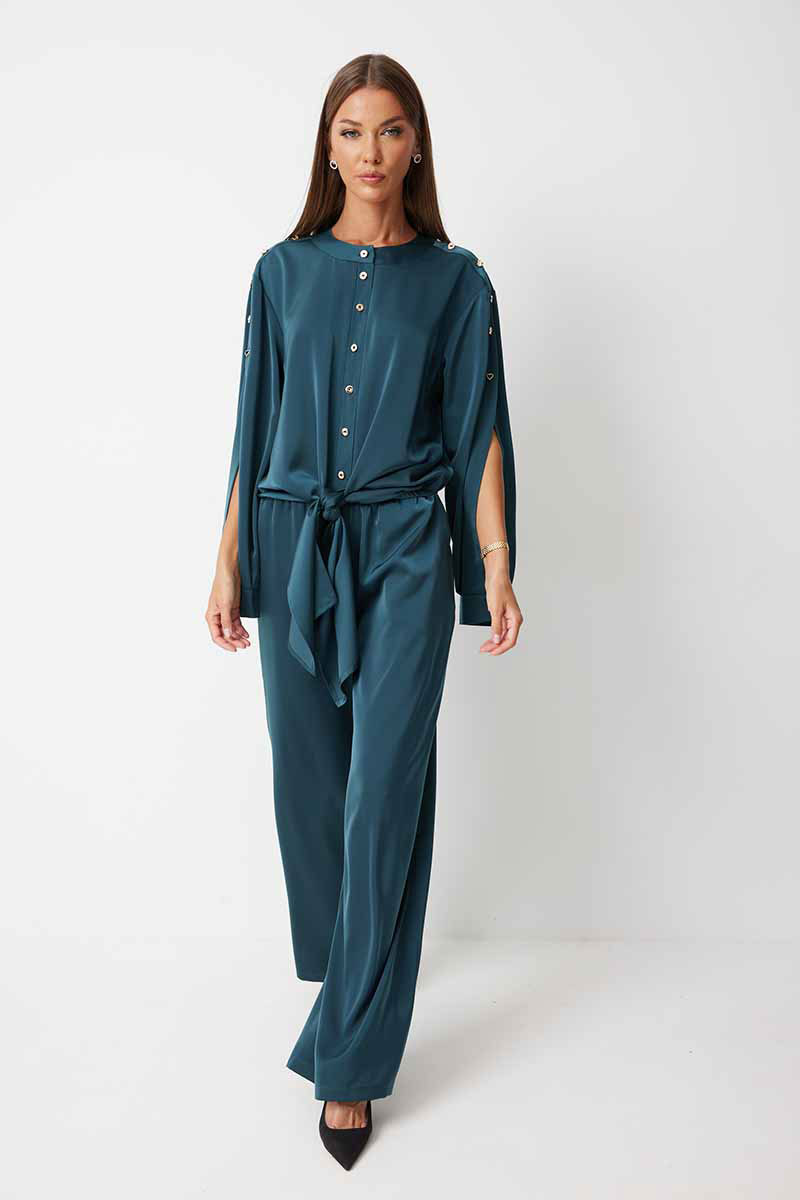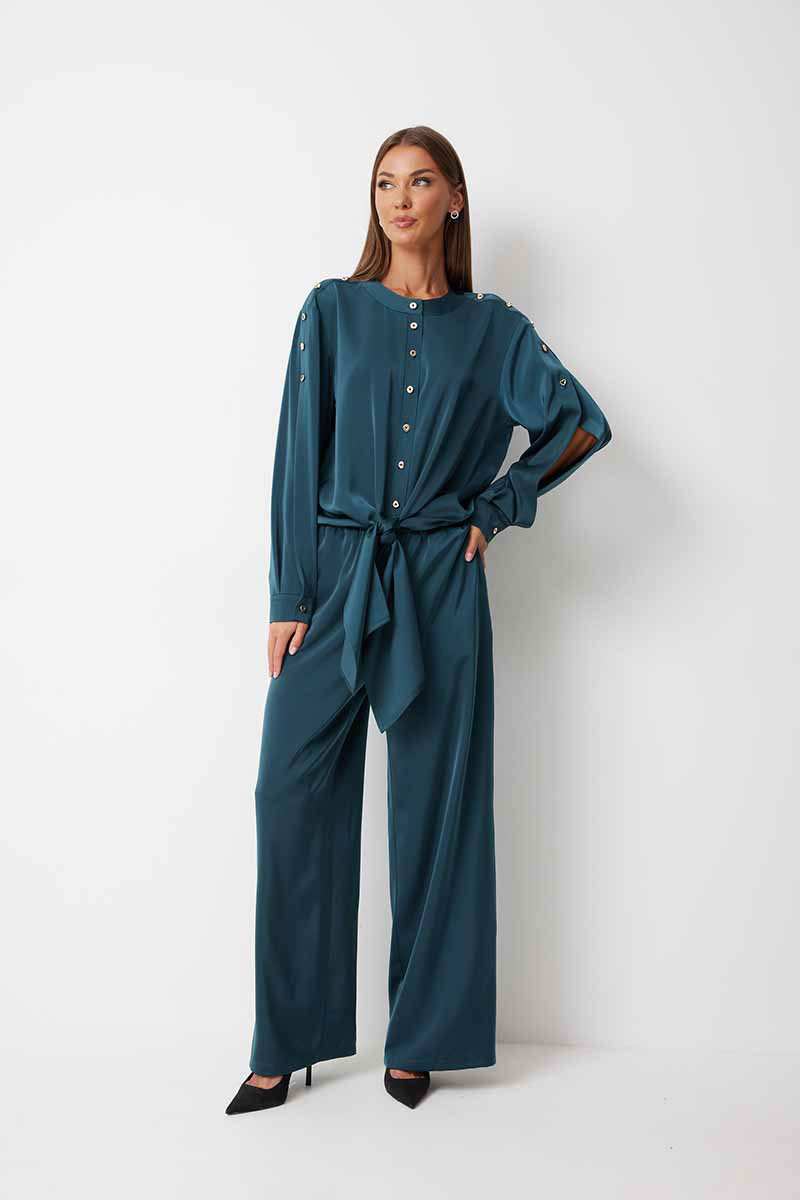 Костюм женский, состоящий из блузки и брюк.