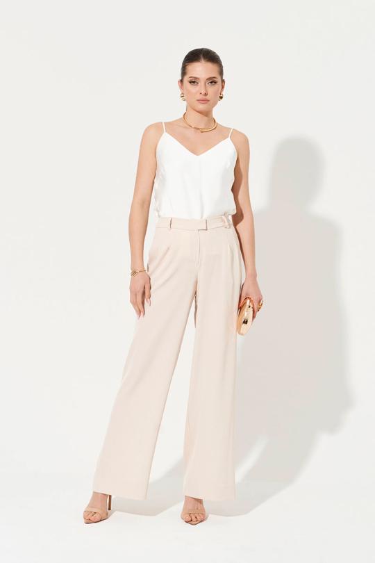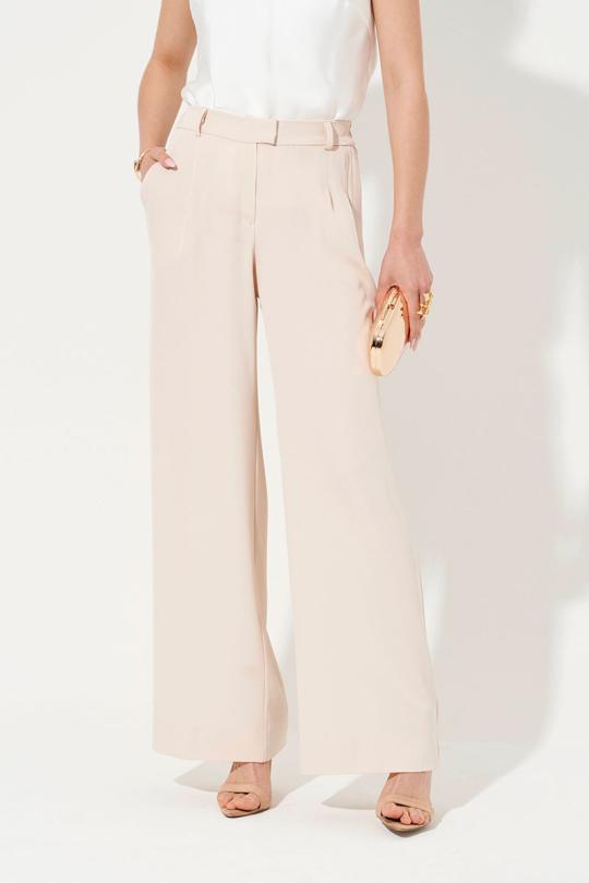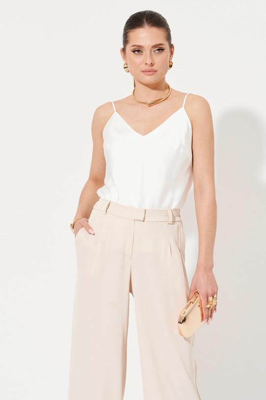 Эти женские брюки из легкой струящейся ткани добавят изысканности вашему образу. Модель прямого кроя с притачным поясом и эластичной вставкой на спинке обеспечивает комфорт и отличную посадку. Брюки дополнены застежкой на молнию и пуговицу, а также удобными боковыми карманами. Идеальный выбор как для повседневной носки, так и для особых случаев. Эти брюки гармонично дополнят ваш гардероб, добавив элегантности и стиля.