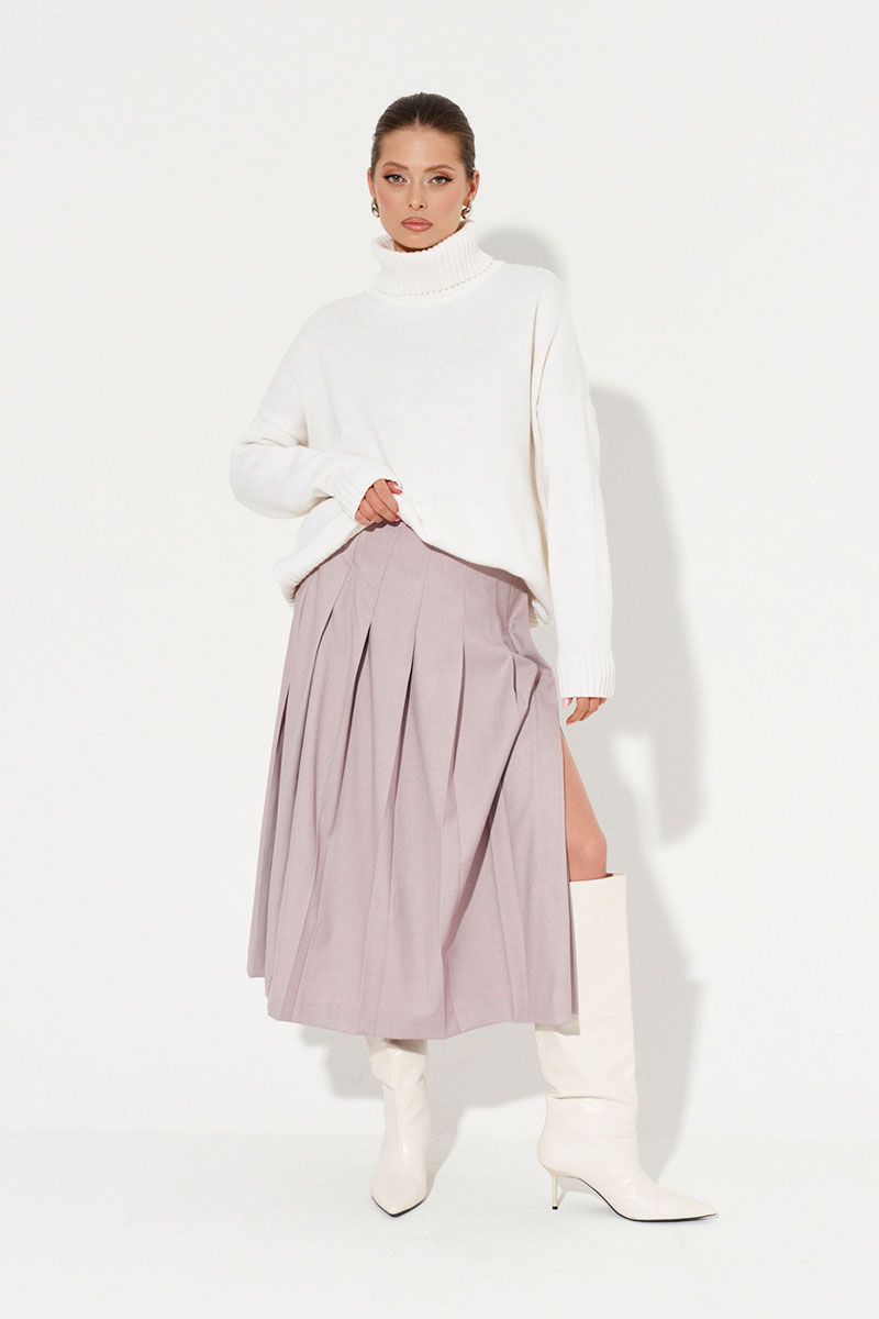 Юбка А-силуэта с оригинальным кроем от бренда Ketty станет идеальным решением для любительниц женственности и делового стиля. Юбка женская миди с поясом фиксируется сбоку на одну пуговицу в тон. Сбоку сделан акцент в виде разреза и застежек-пуговиц. Юбка женская превосходно сидит по фигуре и корректирует область талии. Юбка декорирована плиссировкой с широкими складками и создает дополнительный объем и легкость. Длинная юбка с разрезом имеет подкладку для комфортной носки. Юбка миди предполагает многообразие вариантов для комбинирования: с джемпером, базовой рубашкой, водолазкой, футболкой. Идеально подойдёт для прогулок, работы, отдыха, свиданий, офиса, праздников и для повседневной носки. В женской юбке вы будете чувствовать себя уверенно и комфортно!