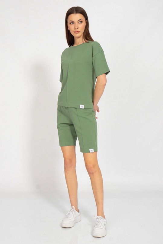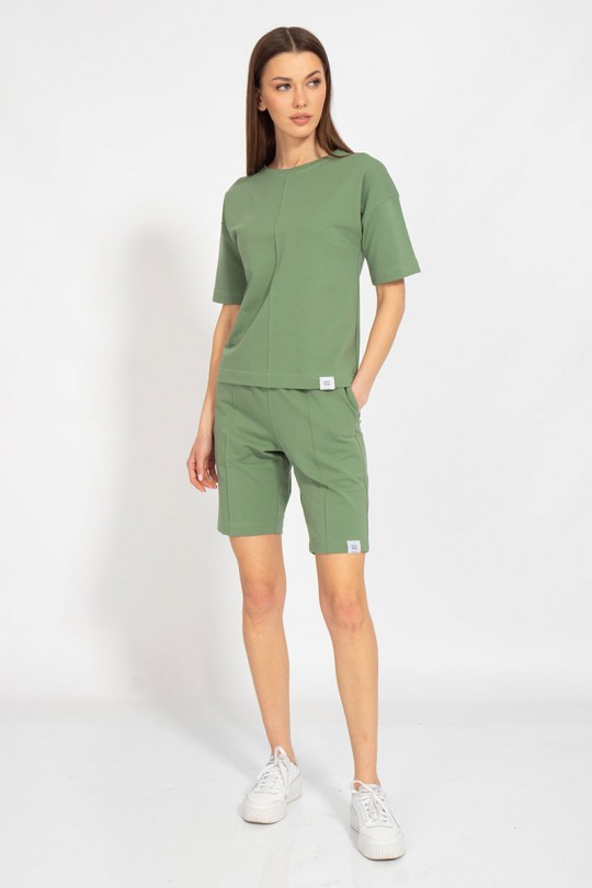 Шорты средней посадки с отделкой в виде канта по деталям переда и карманами в боковых швах.