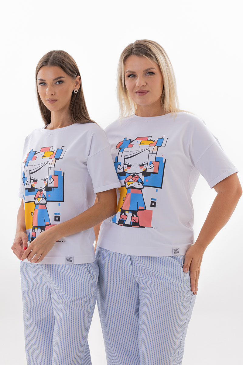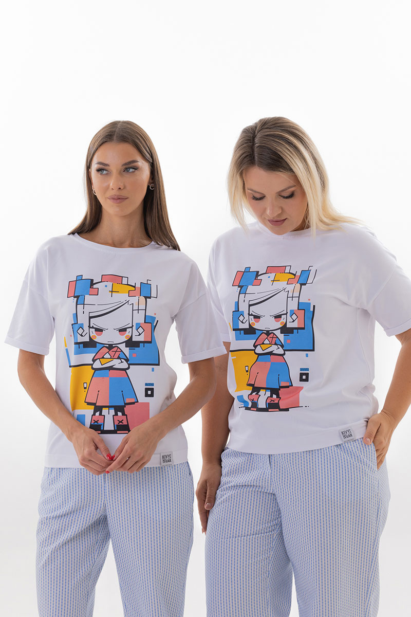 Джемпер свободного кроя. Удлиненный рукав, с подворотом. Принт методом термопереноса, цифровая печать. Ткань кулирная гладь , качество Пенье, плотность 200 г.м2