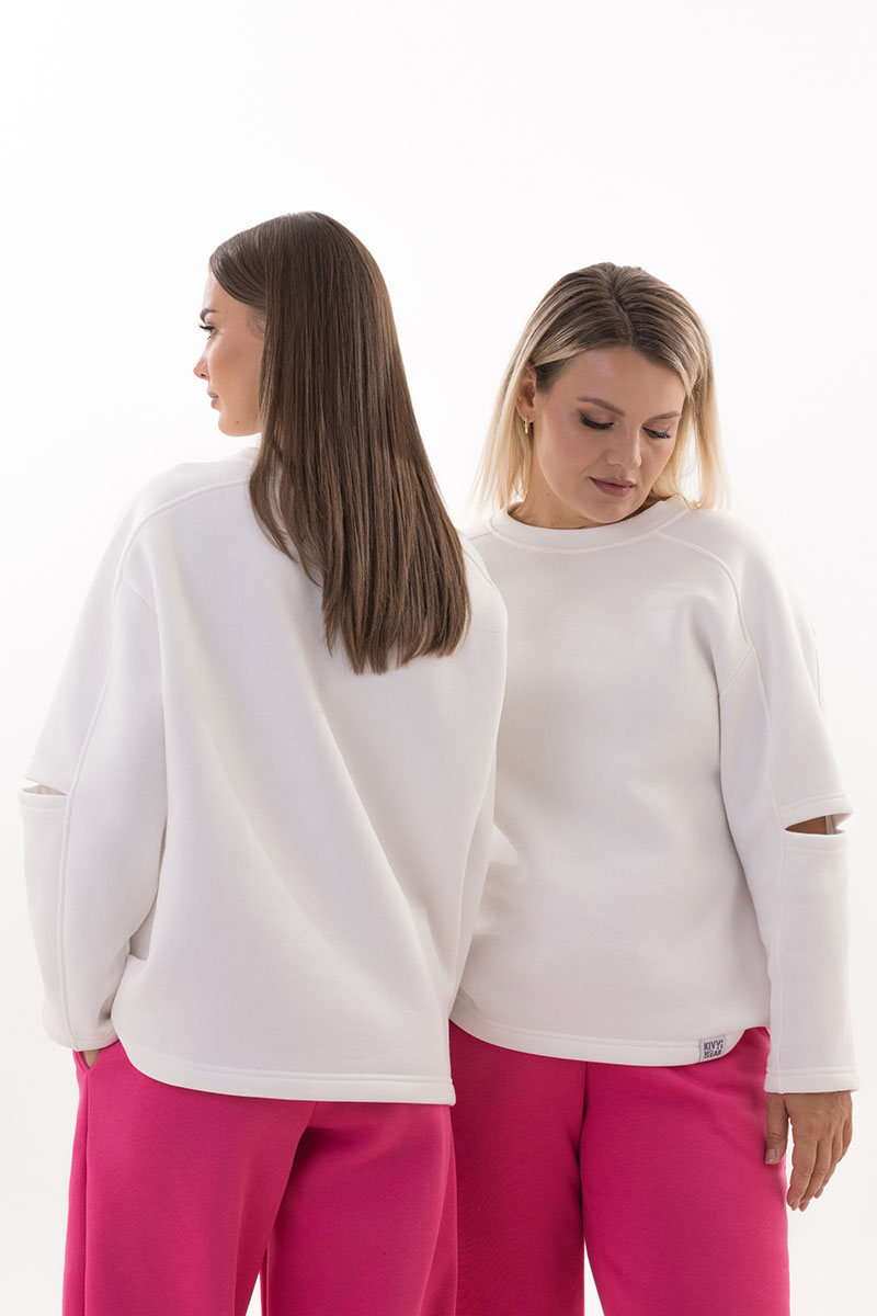 максимальную свободу движений. Свитшот свободного силуэта с разрезами на рукавах добавляет оригинальности и позволяет вам выделиться из толпы.