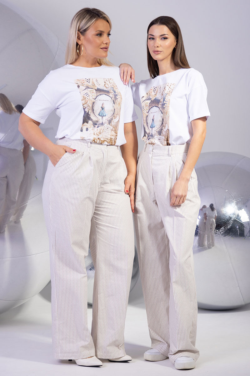 Брюки-палаццо свободного силуэта создают эффект легкости и динамики. Модель с резинкой по спинке пояса (от 48 размера) гарантирует максимальный комфорт и удобную посадку, а