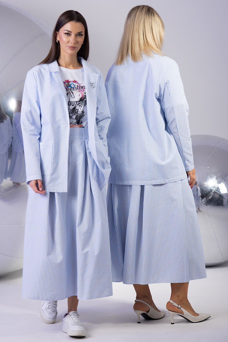 Этот костюм — универсальное решение для офиса, прогулок или мероприятий. Комбинируйте жакет и юбку вместе для элегантного ансамбля или сочетайте с другими базовыми вещами, создавая