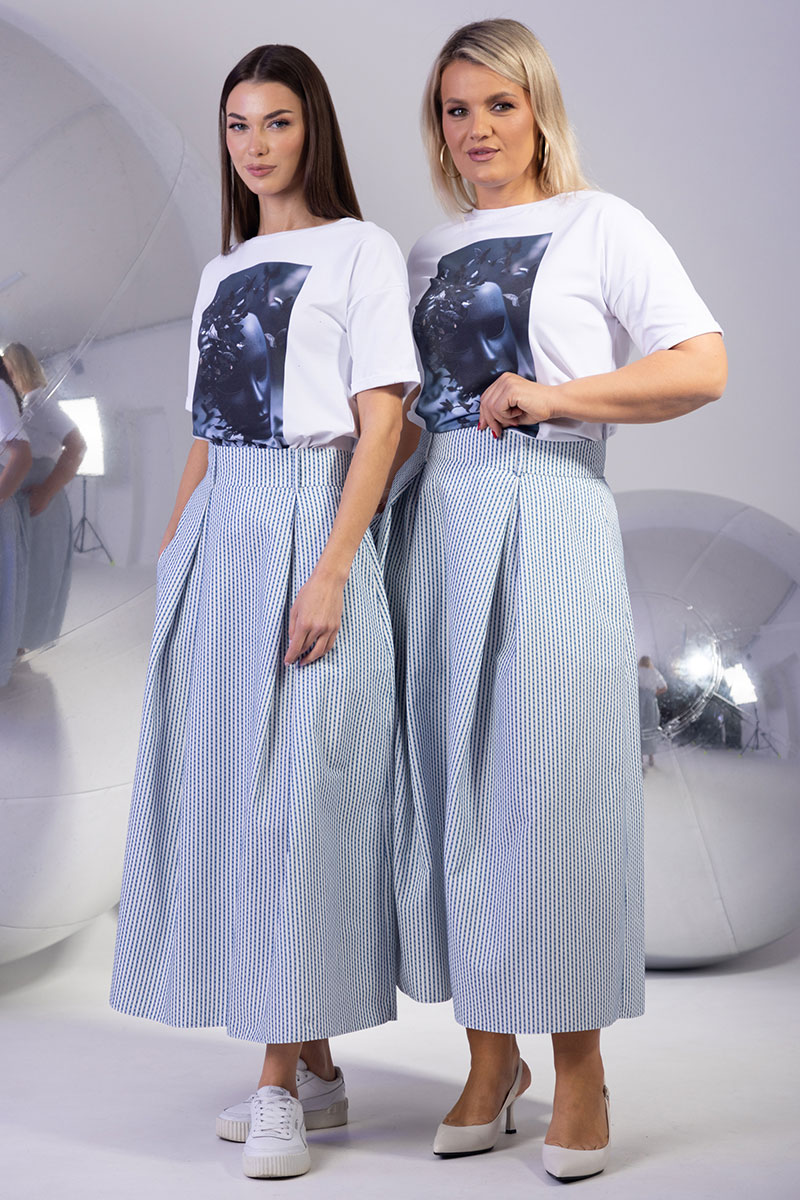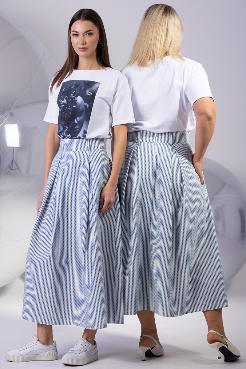 Складки по переду и спинке юбки добавляют динамику и делают ее идеальной для любого случая, будь то деловая встреча или вечерний выход. Она прекрасно сочетается как с классическими,