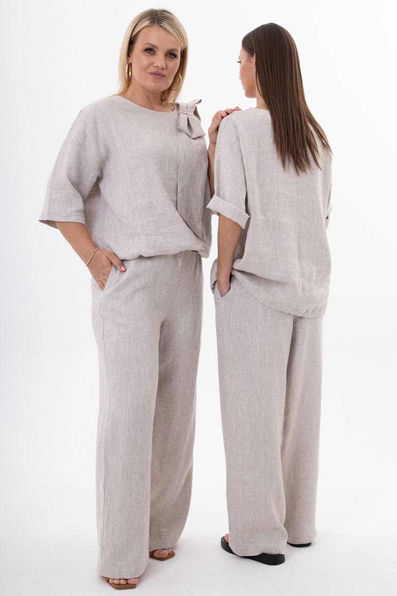 Женский костюм из льна с вискозой | Белорусский премиум-комплект: блуза и брюки