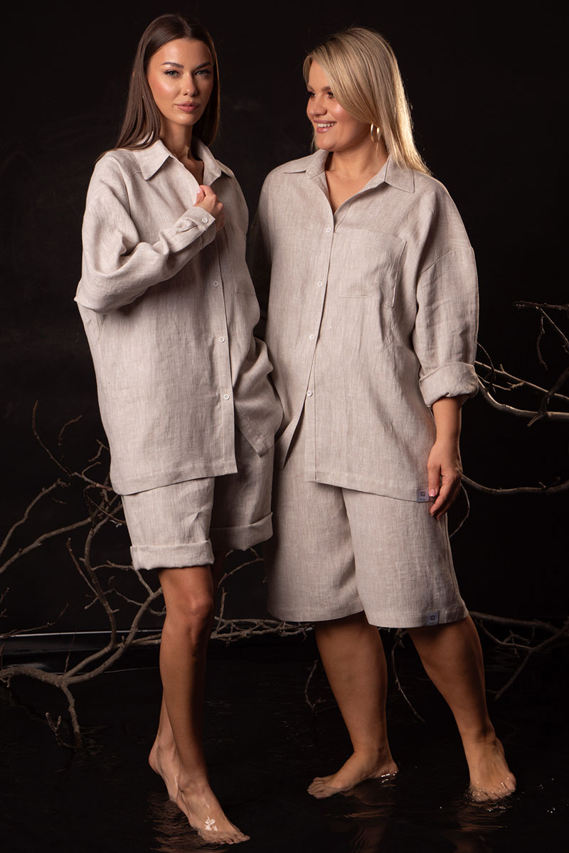 блузу и шорты свободного прямого силуэта на мягкой резинке, созданные для любительниц лаконичных и функциональных образов. Натуральный лен обеспечивает воздухопроницаемость и