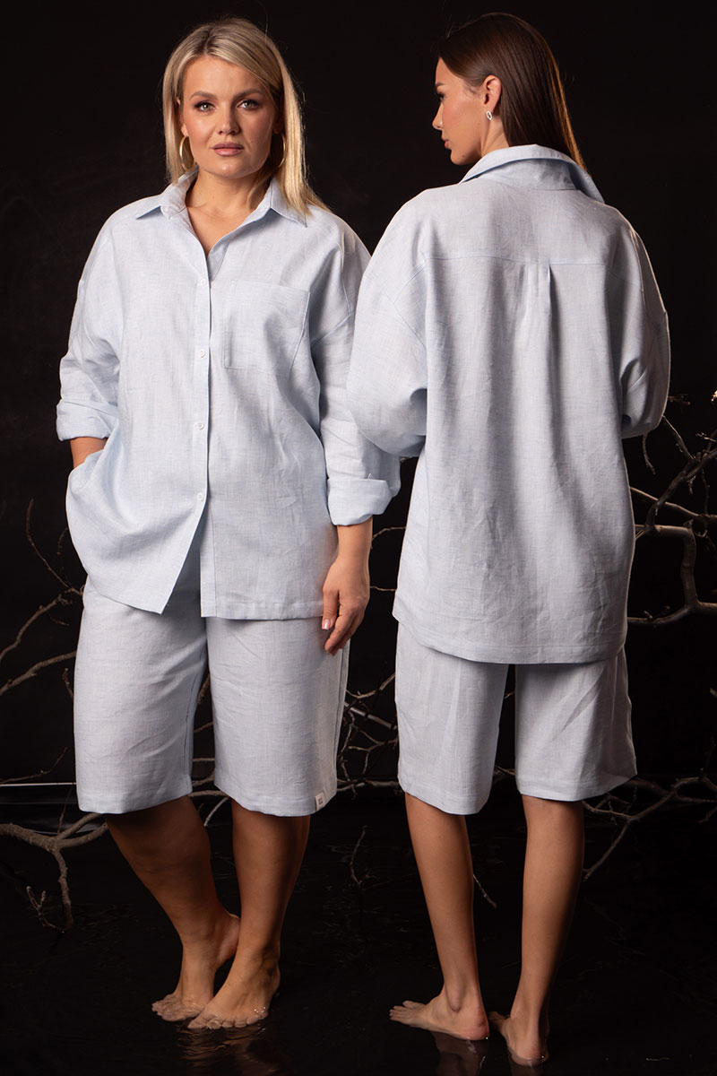 блузу и шорты свободного прямого силуэта на мягкой резинке, созданные для любительниц лаконичных и функциональных образов. Натуральный лен обеспечивает воздухопроницаемость и