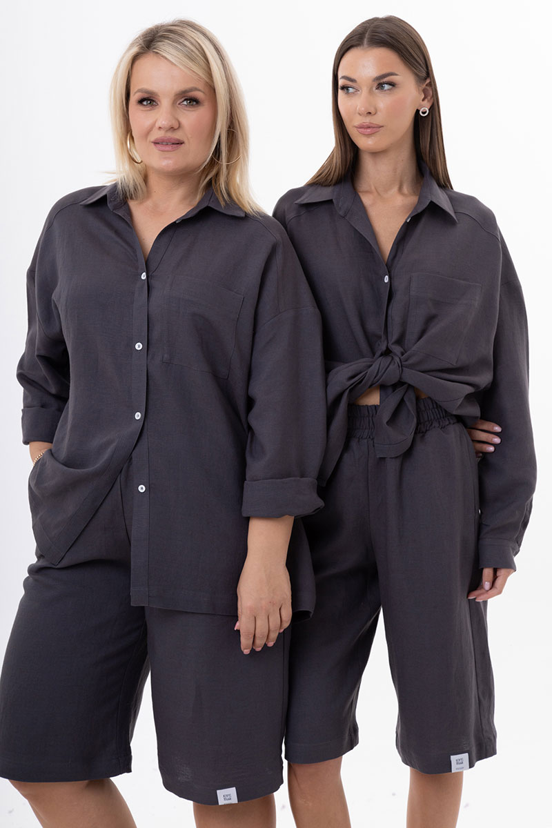 блузу и шорты свободного прямого силуэта на мягкой резинке, созданные для любительниц лаконичных и функциональных образов. Натуральный лен обеспечивает воздухопроницаемость и