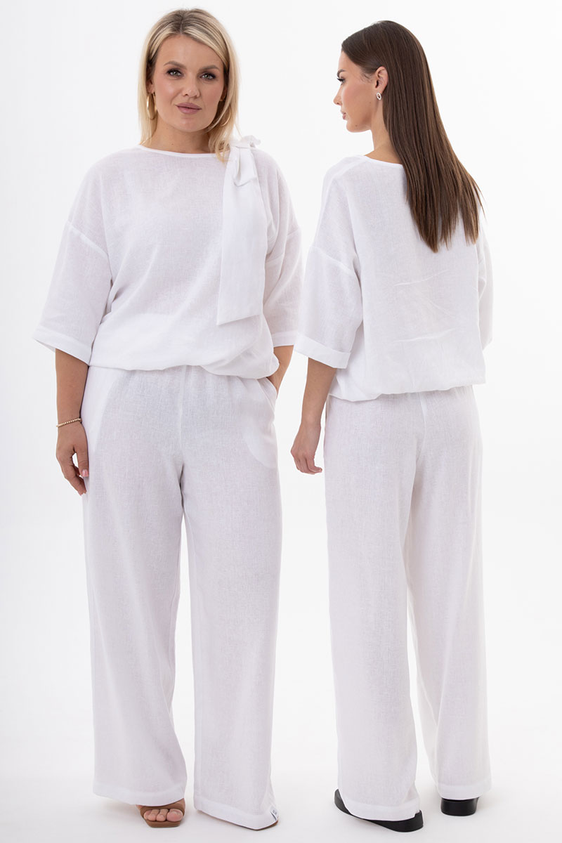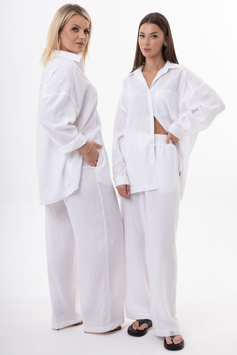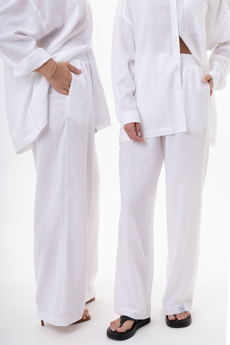 Удобные и стильные брюки прямого силуэта на мягкой резинке — идеальный баланс эстетики и функциональности. Изготовленные из премиального льна с добавлением вискозы белорусского