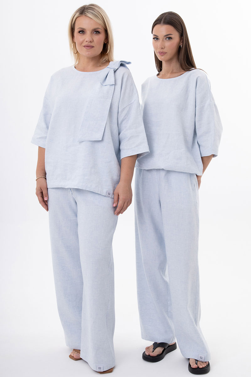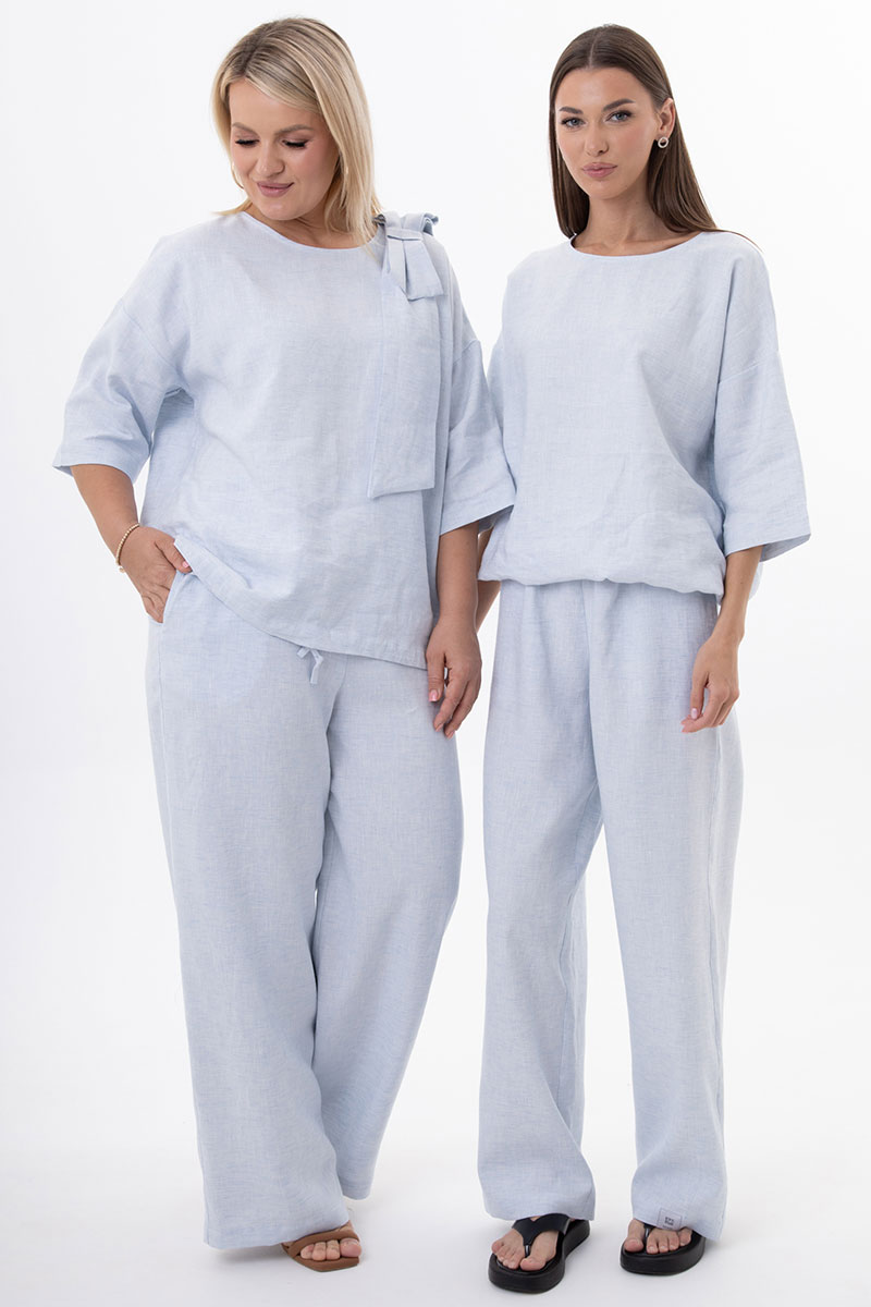 Женский костюм из льна с вискозой | Белорусский комплект: джемпер с бантом и брюки