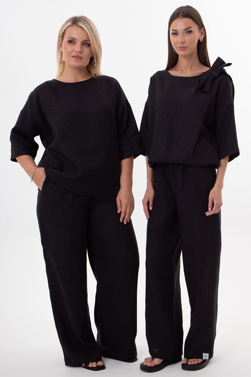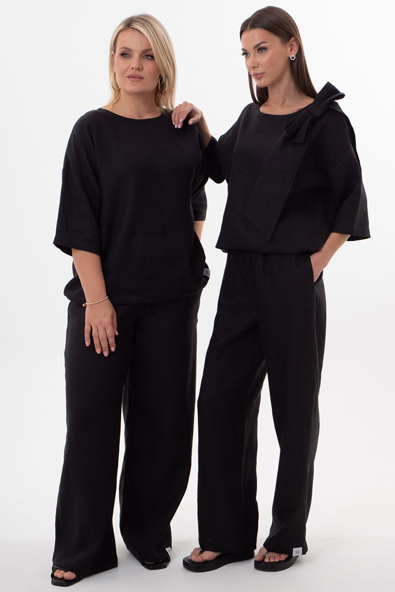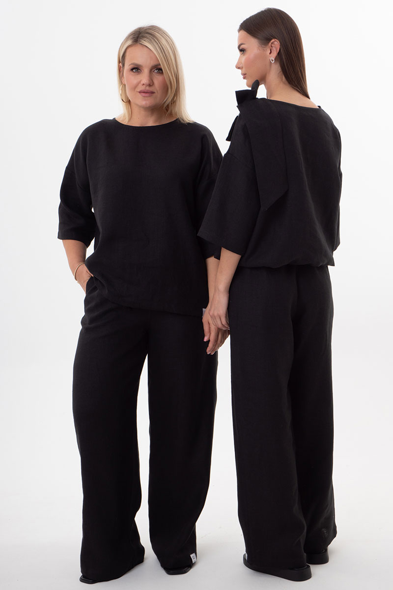 Женский костюм из льна с вискозой | Белорусский комплект: джемпер с бантом и брюки