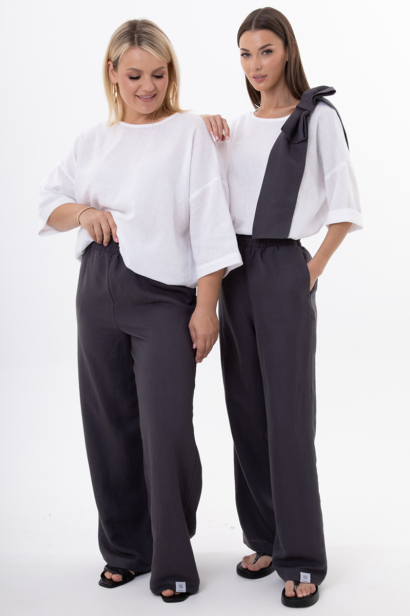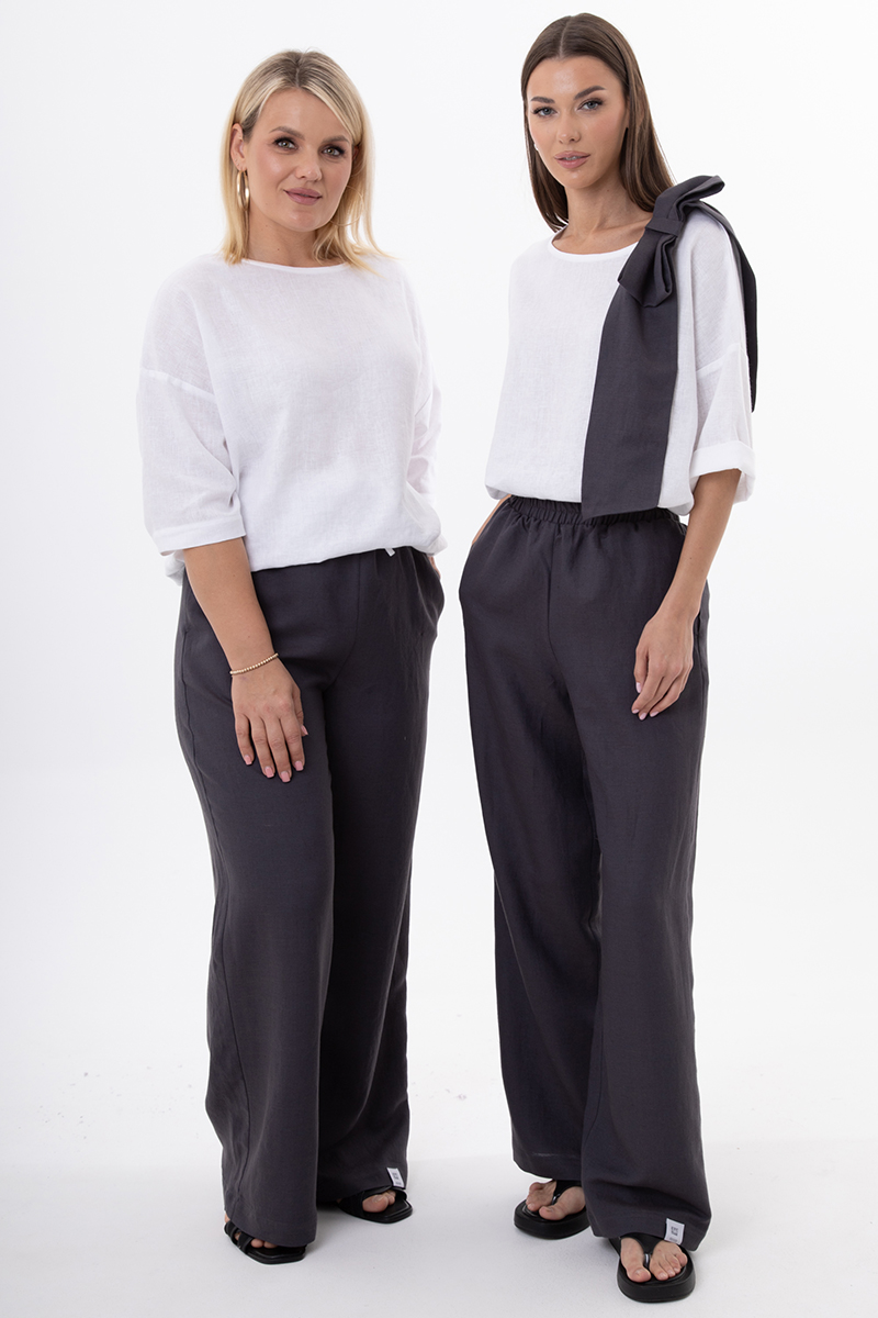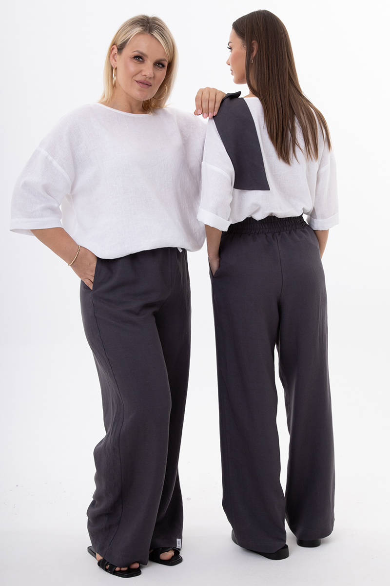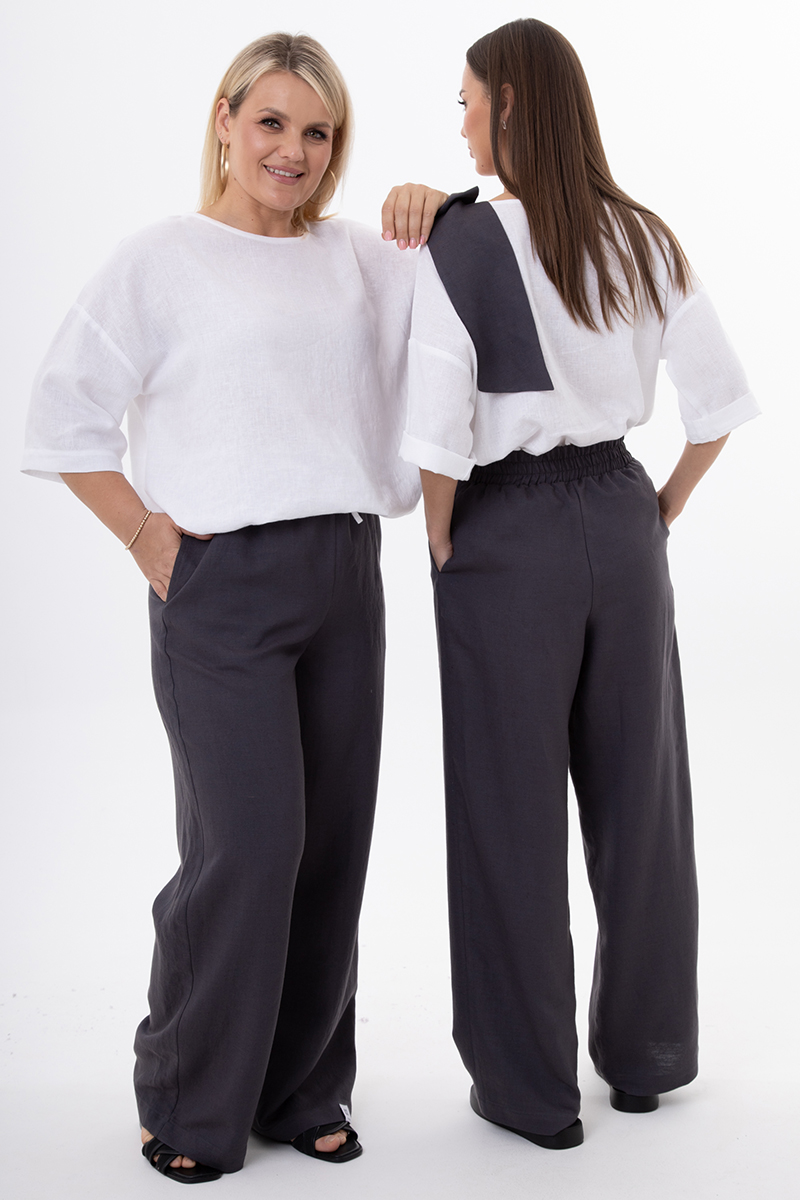 Костюм из белорусского льна с вискозой премиум-класса — идеальное сочетание лаконичного стиля, комфорта и функциональности. Набор включает джемпер свободного прямого кроя со съемным