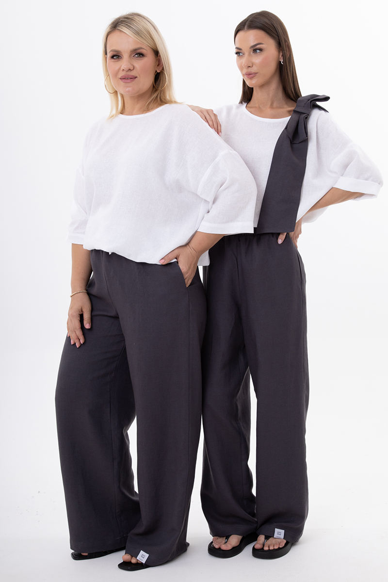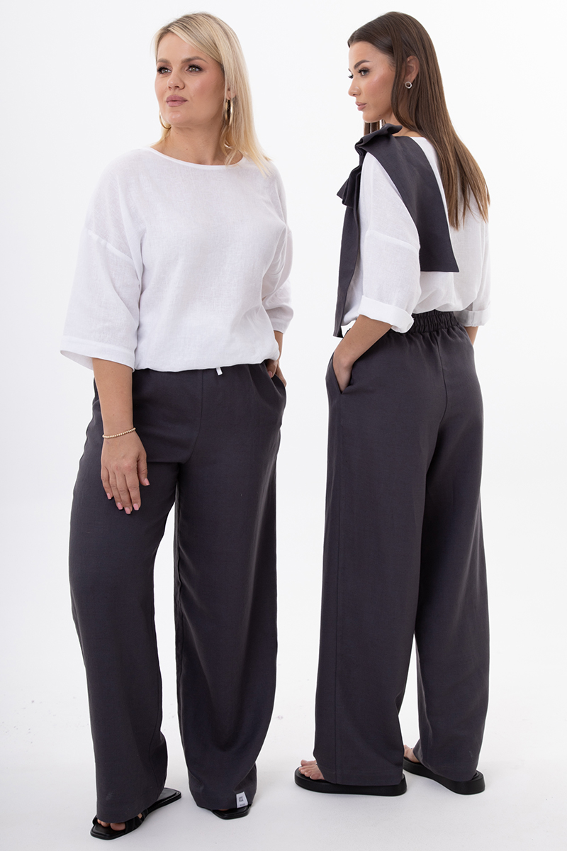 Женский костюм из льна с вискозой | Белорусский комплект: джемпер с бантом и брюки