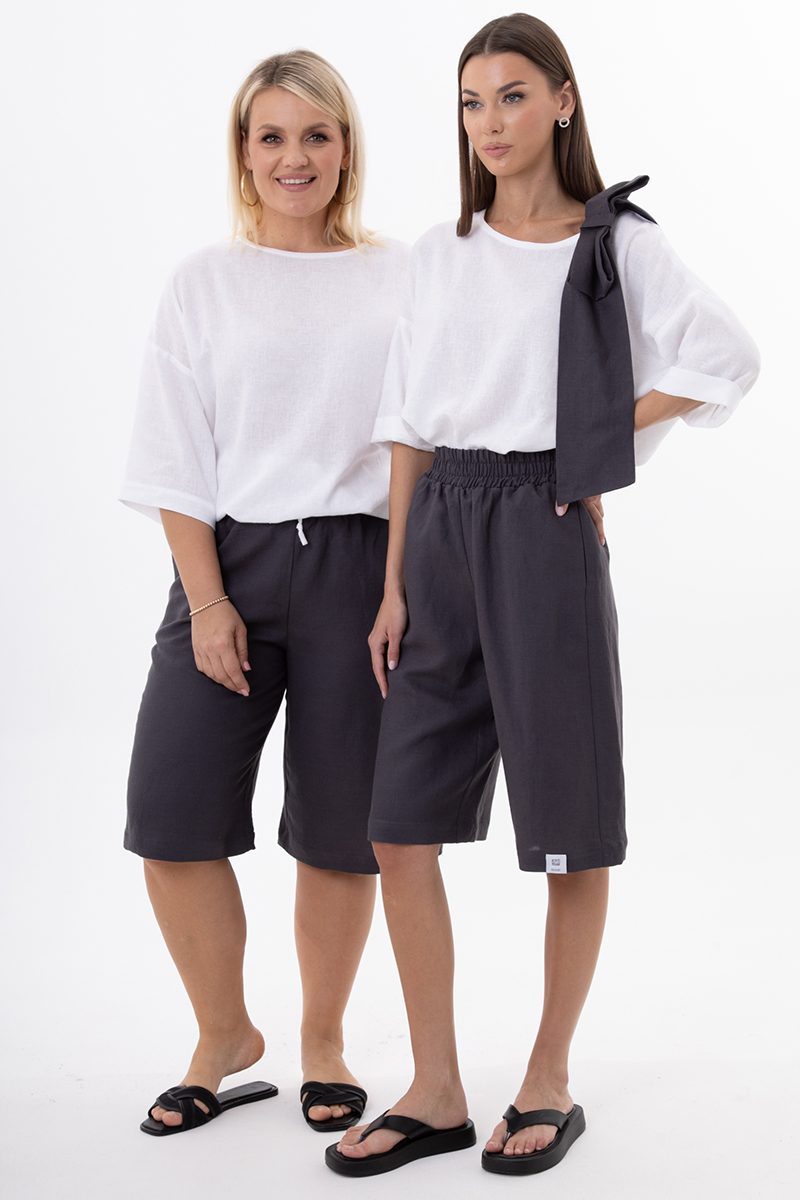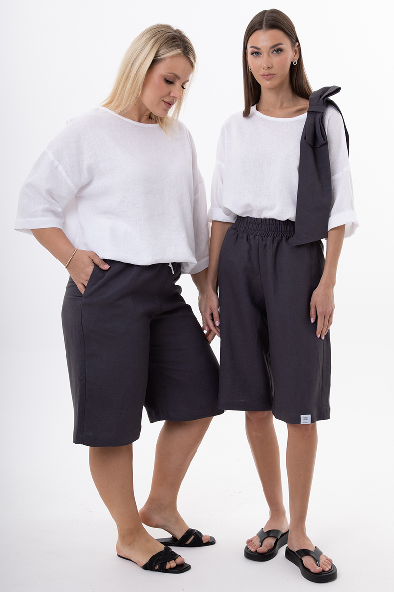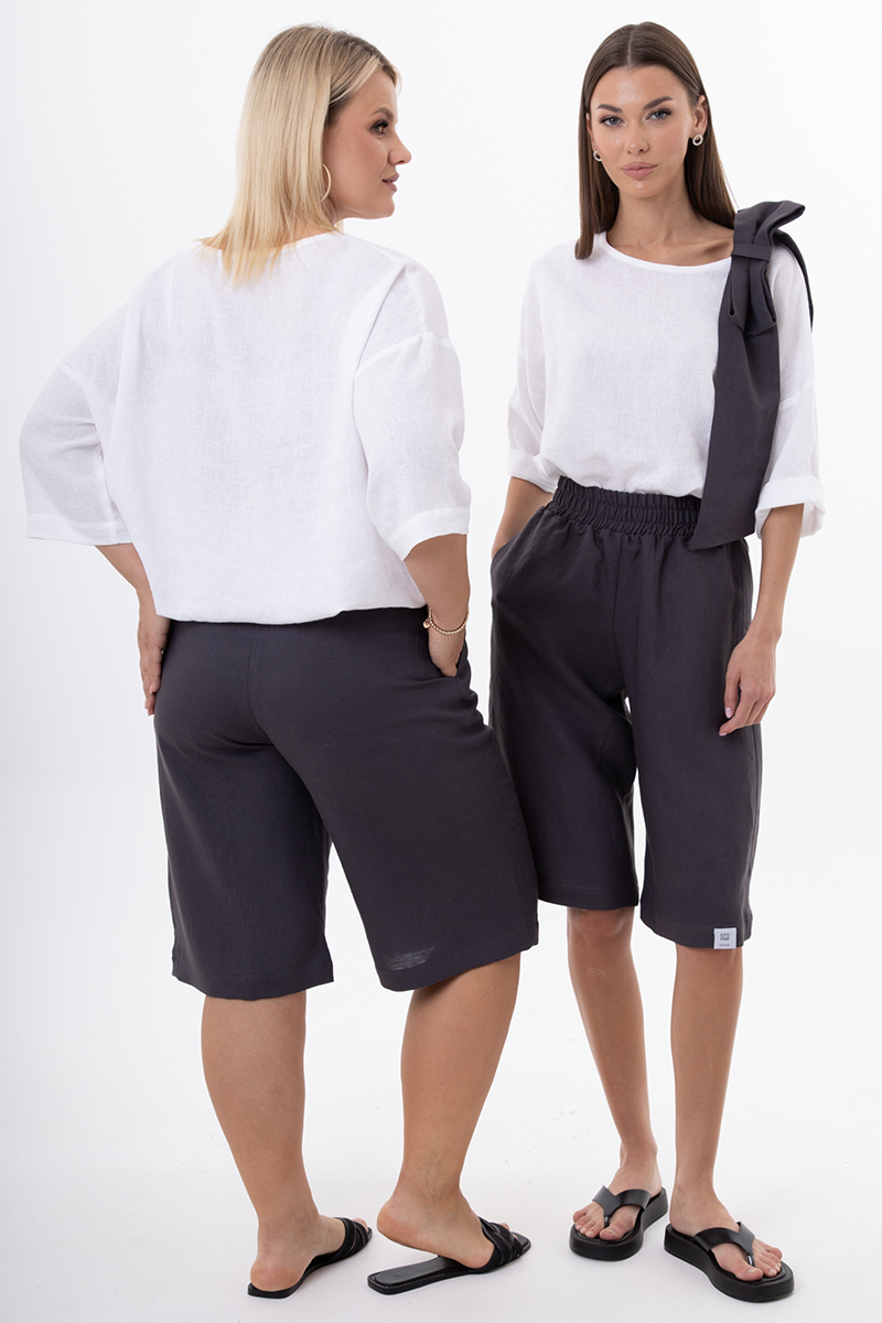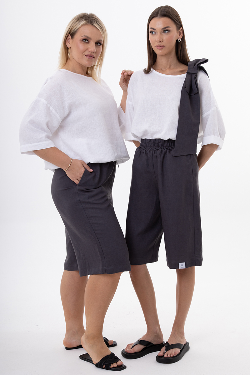 Женский костюм из льна с вискозой премиум-класса. Комплект: джемпер со съемным бантом в комплекте и шорты.
