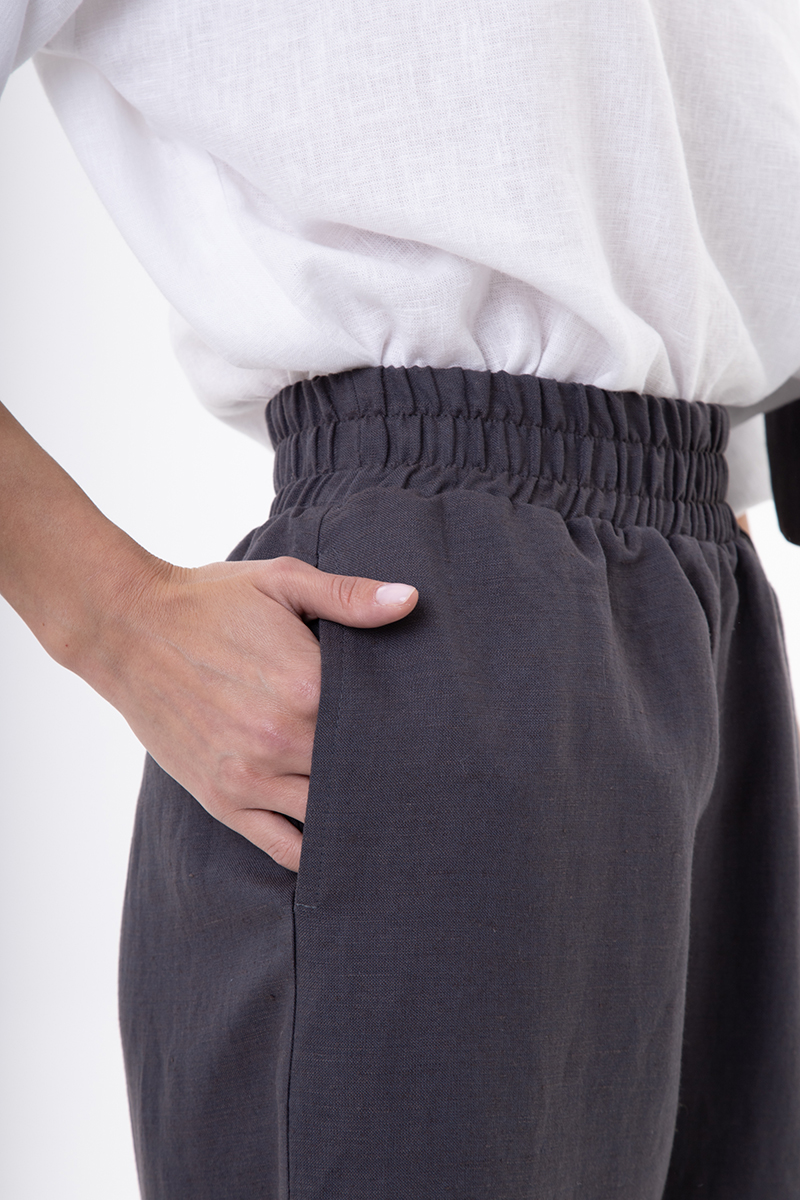 Шорты: Прямой свободный крой на резинке с карманами в боковых швах подчеркивает практичность и современный стиль. Удобный пояс не сковывает движений, а продуманная длина визуально
