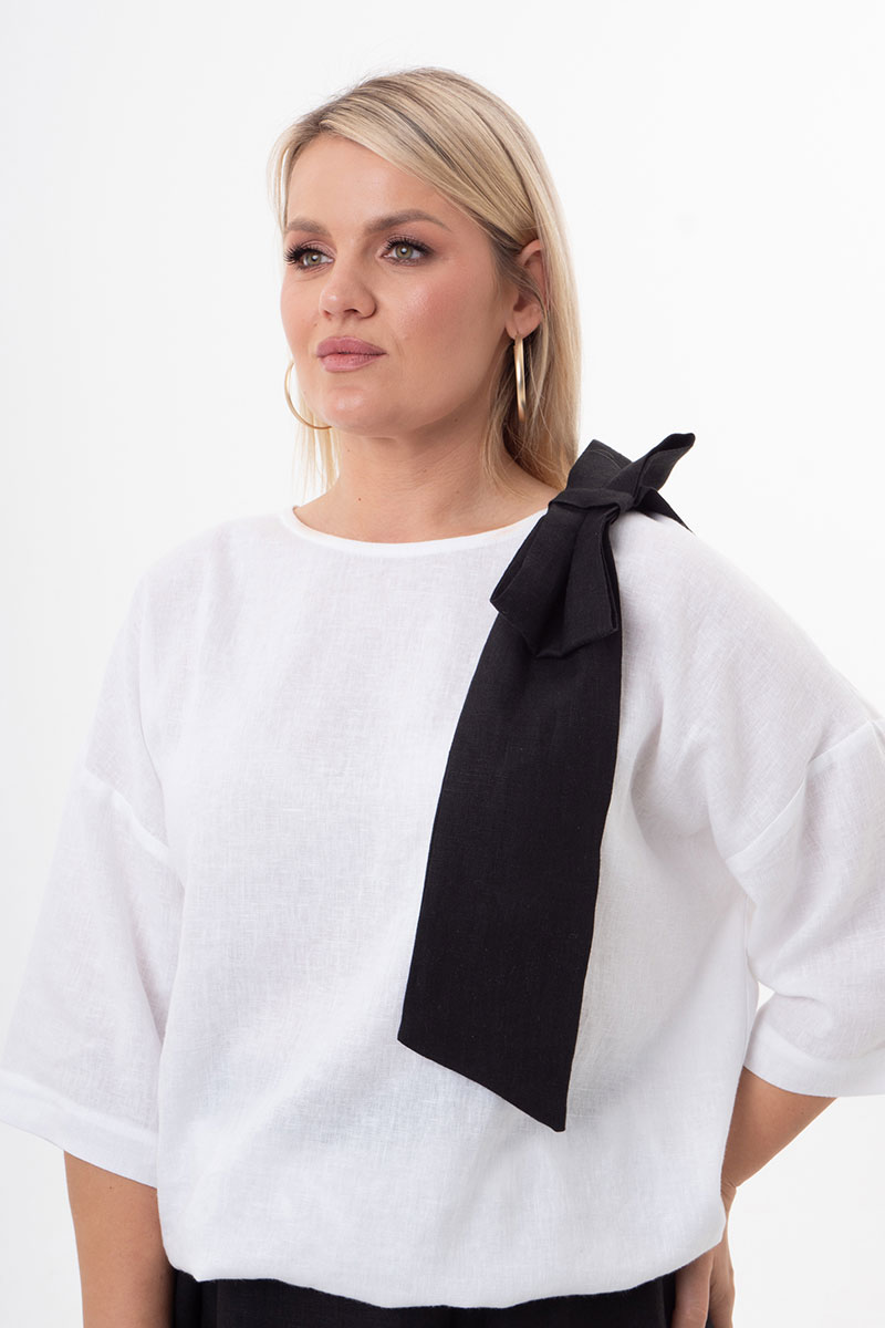 Джемпер: Свободный силуэт с круглым вырезом и съемным бантом в комплекте позволяет создавать два образа в одном — лаконичный базовый лук или утонченный акцент с романтичным штрихом.